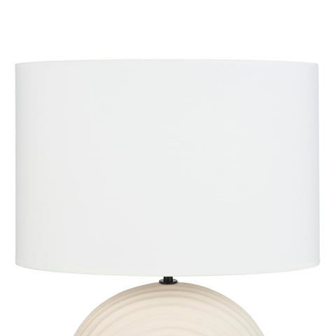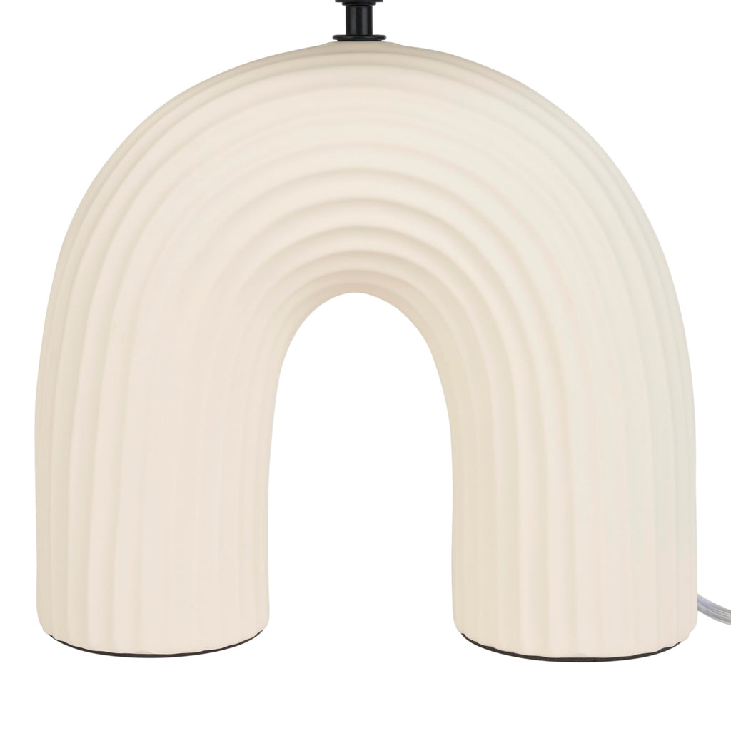 Details: This contemporary table lamp features a textured arch base in a soft off-white hue, complemented by a clean, white shade that casts a crisp glow. Its ribbed design adds a touch of sophistication, making it an ideal accent for modern and transitional interiors. The gentle curves and neutral palette ensure it blends seamlessly with various decor styles.