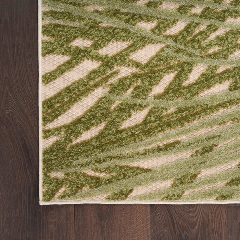 Details: This sunny and sensational collection of flat-woven indoor/outdoor rugs is pretty, practical, and perfect for high-traffic areas. With its inviting assortment of classic and contemporary designs, tempting color palettes, and terrific textures, these multipurpose rugs will afford an air of simple sophistication to any environment. Place this green Aloha rug on your patio or porch and watch your space transform into a cozy tropical getaway! The overlapping leaf pattern is woven in a high-low texture that’s as delightful to look at as it is to walk on. This tropical rug is made from durable, stain resistant polypropylene yarns that pull double duty as a foundation for both your indoor and outdoor spaces.