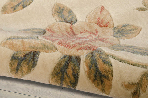 Details: Lovely light-filled tones of ivory, cream, rose, crimson, sky and olive lend an air of enchantment to a traditional elaborately bordered blossom and leaf design. Finely hand-carved details create a dramatic depth and exciting contrast.FeaturesColor: IvoryMaterial: 50% Poly, 50% AcrylicCollection: CambridgeProduct Dimensions: 2' L x 2'9"WPile Height: 0.5Shape: RectangleConstruction: Machine WovenMade in China