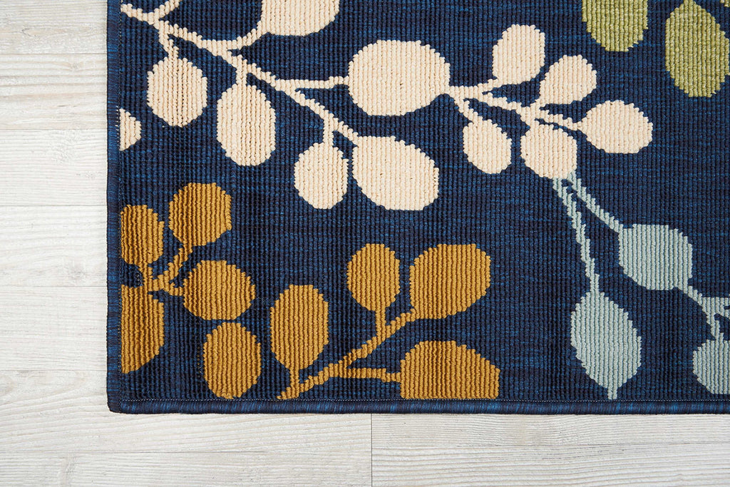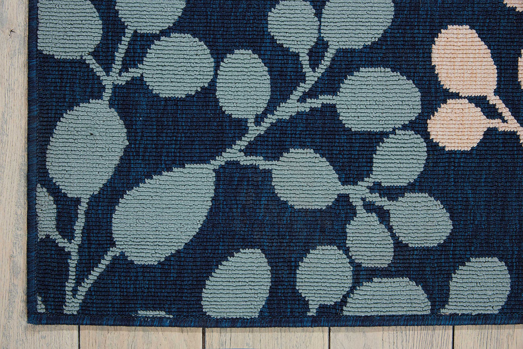 Details: Rich Caribbean blues set the scene for a leafy glade in this charming composition. A pleasing array of soft sage, gold and ivory sprigs enliven the design. This pretty and playful piece is a lovely touch for a special room.Features : Materials: 100% PolypropyleneFinish: Navy bluePile description: LoopPile description: LowConstruction: Machine madeConstruction technique: Power-loomedShedding: Low sheddingNon-slip back: NoRecommended for areas with heavy foot trafficBorder: Borderless designIndoor/OutdoorRectangle shapeSpecifications : Product Dimensions : 0.25"H x 30"W x 48"DProduct Weight : 3 lbs
