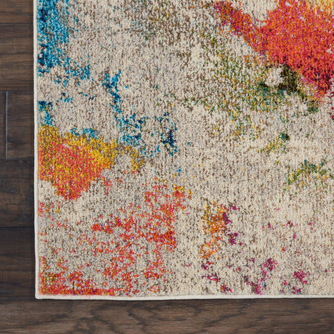 Details: Cosmic consciousness inspires the Celestial Collection by Nourison. These heavenly area rugs possess a dramatic beauty, with rich, saturated colors that swirl together in unique and vivid designs. Each stunning area rug conveys a sense of movement and energy that verges on divine. The abstract beauty of a painted canvas is mirrored perfectly in this Celestial Collection rug, with a spectrum of colors splashed across an ivory field. The beautifully bohemian tones and silky texture add a note of casual comfort to any room in the home.