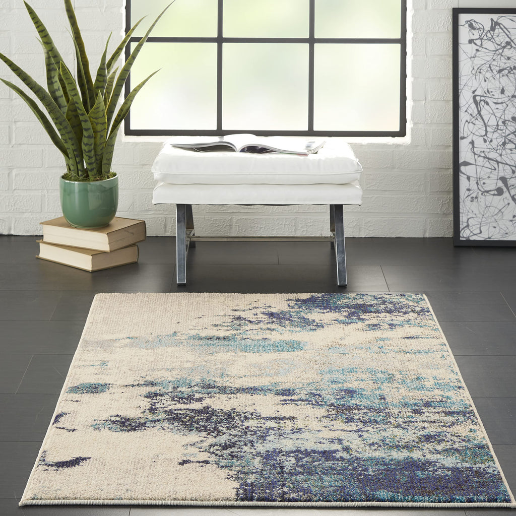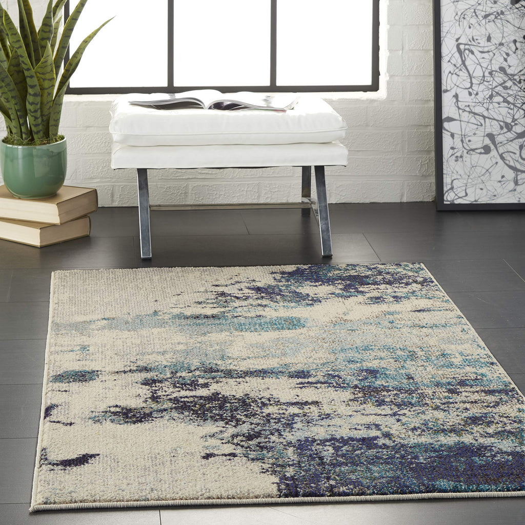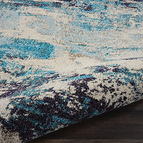 Details: Cosmic consciousness inspires the Celestial Collection by Nourison. These heavenly area rugs possess a dramatic beauty, with rich, saturated colors that swirl together in unique and vivid designs. Each stunning area rug conveys a sense of movement and energy that verges on divine. Serene shades of blue and navy wash over this oversized area rug, creating a contemporary feel with a touch of coastal décor. Silky texture and a peaceful ivory field bring casual comfort to any room in the home.