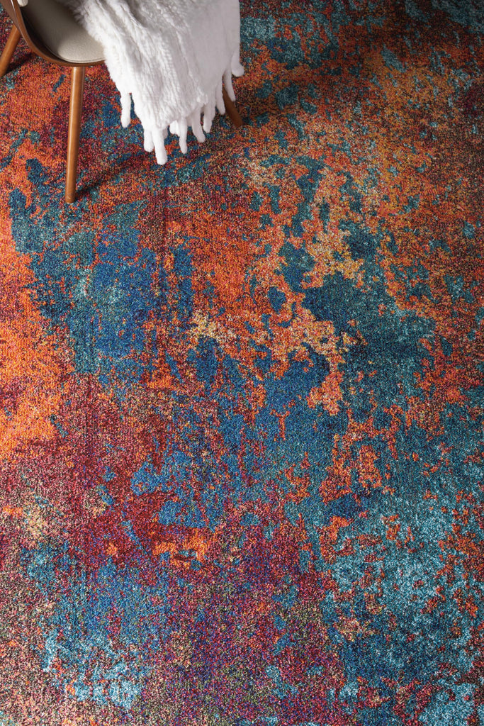 Details: Cosmic consciousness inspires the Celestial Collection by Nourison. These heavenly area rugs possess a dramatic beauty, with rich, saturated colors that swirl together in unique and vivid designs. Each stunning area rug conveys a sense of movement and energy that verges on divine. Glowing orange, coral and crimson leaves light up an exquisite autumnal azure sky. Featuring a sensational silky texture and breathtaking tone, this Celestial area rug from Nourison is downright dazzling in its dreamy appeal.