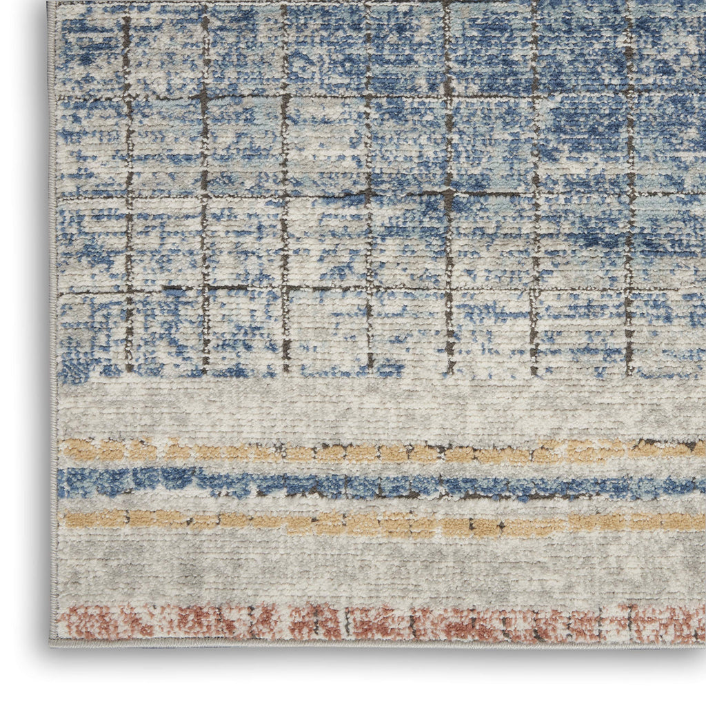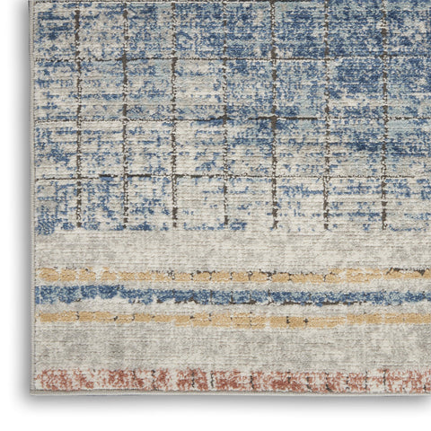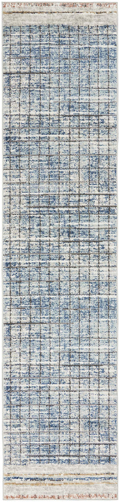 Details: A subtle grid creates a linear motif in this modern abstract area rug from the Concerto Collection. Its contemporary allure is finished with side borders, an intriguingly distressed surface, and a thick, luscious cut pile. Power-loomed in deep lapis blue, ivory, and golden beige mineral tones, with a serged edge for modern simplicity.Features : Materials: 80% Polypropylene, 20% PolyesterFinish: BluePile Description: LowConstruction: Machine madeConstruction Technique: Power-loomedRunner shapeShedding: Moderate sheddingNon-Slip Back: NoRecommended for areas with moderate foot trafficBorder: Borderless designIndoor onlySpecifications : Product Dimensions : 0.32"H x 26"W x 120"DProduct Weight : 8.82 lbsShape : Runner