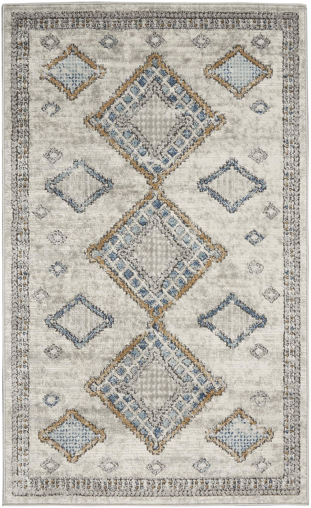 Details: Create a sense of tranquility with the sophisticated Concerto collection. Its subtle, mineral-inspired colors mirror the beauty of natural stone with a dash of artful elegance. Choose from intriguing abstracts or modern expressions of classic Persian design. Put your home in the vanguard of contemporary décor with this compelling collection of area rugs. Indulgently soft yet durable in a power-loomed blend of 80% polypropylene, 20% polyester. Made in Turkey. Decorate with diamonds! This unique, Moroccan-inspired center medallion design from the Concerto Collection of area rugs presents a string of diamonds in a subtle mineral palette of ivory, blue, and gold. Power-loomed for texture and comfort with thick cut-pile in a soft, easy to clean blend of polyester and polypropylene. A vintage fade, ornamental border and serged edge complement boho, contemporary, and modern styles of decor.