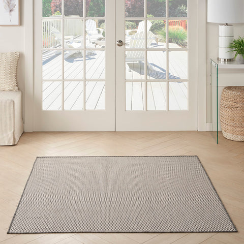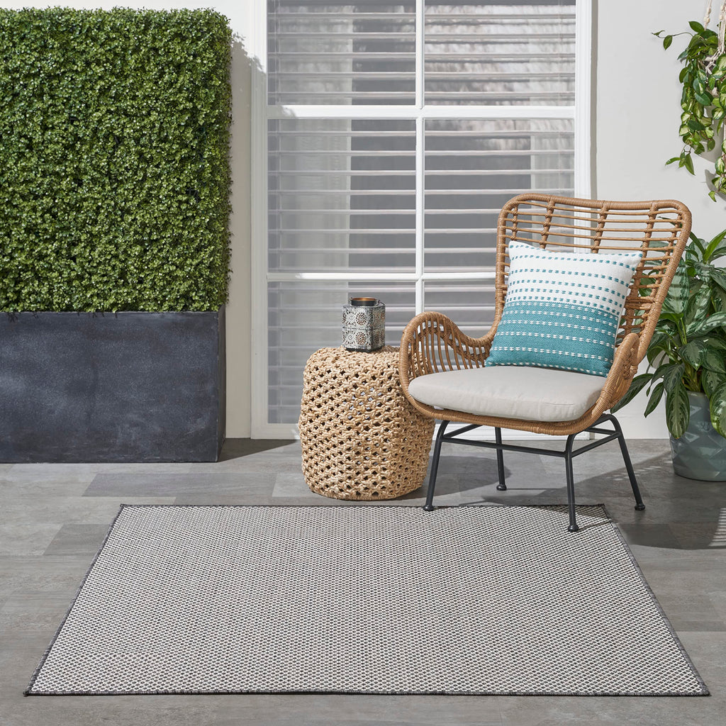 Details: Set a warm and relaxing tone with the Courtyard Collection. These elegantly understated outdoor rugs feature subtly textured geometric patterns in fashionable palettes designed to anchor modern and contemporary decor. Flat woven polypropylene fibers stand up to heavy traffic and are easy to clean: simply hose-rinse and air dry. Courtyard rugs are ideal for your porch, patio, or any indoor space.