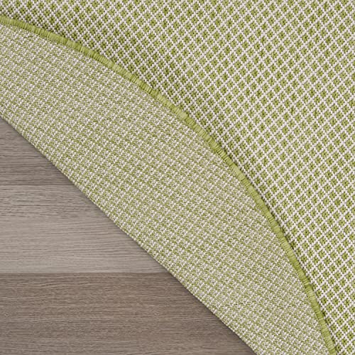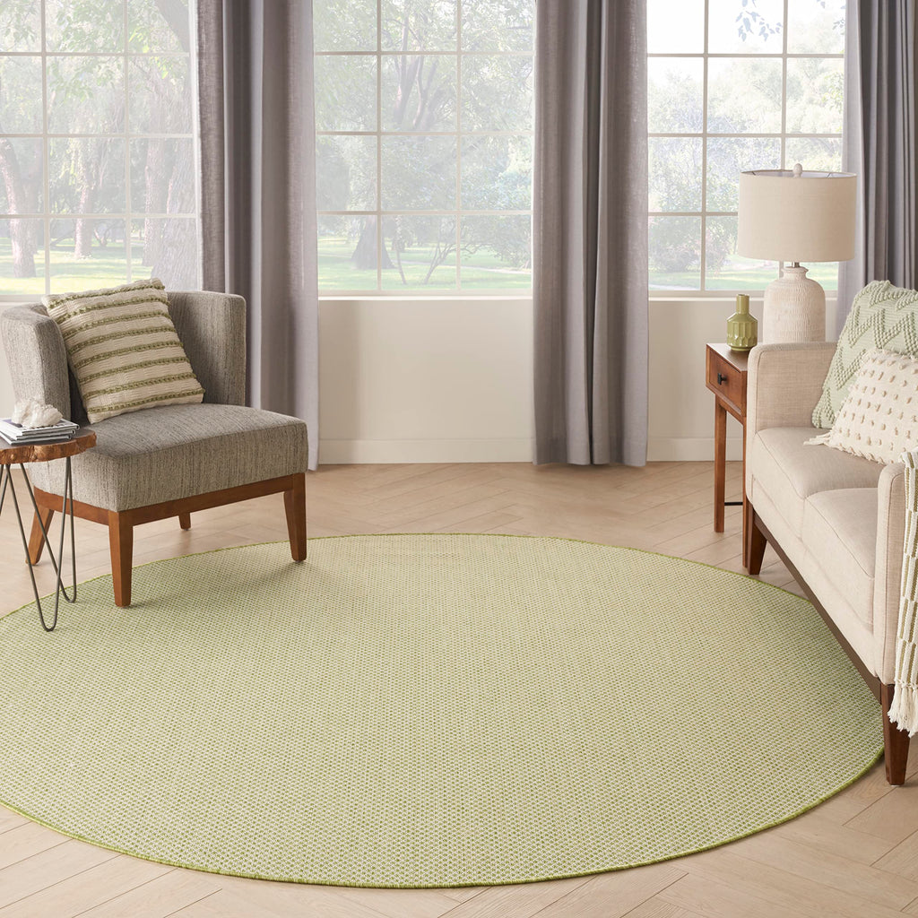 Details: Set a warm and relaxing tone with the Courtyard Collection. These elegantly understated outdoor rugs feature subtly textured geometric patterns in fashionable palettes designed to anchor modern and contemporary decor. Flat woven polypropylene fibers stand up to heavy traffic and are easy to clean: simply hose-rinse and air dry. Courtyard rugs are ideal for your porch, patio, or any indoor space.