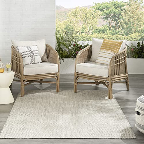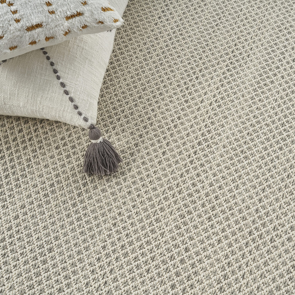 Details: Set a warm and relaxing tone with the Courtyard Collection. These elegantly understated indoor/outdoor rugs feature subtly textured geometric patterns in fashionable palettes designed to anchor modern and contemporary decor. Flat woven polypropylene fibers stand up to heavy traffic and are easy to clean: simply hose-rinse and air dry. Courtyard rugs are ideal for your porch, patio, or any indoor space. With its striking geometric pattern in ivory and silver grey, this Courtyard Collection indoor/outdoor rug exudes contemporary style. Its subtly textured surface is crafted in classic ivory and silver grey for a seamless complement to modern settings. Machine made polypropylene flat weave stands up to heavy traffic and is easy to clean: just hose-rinse and air dry.