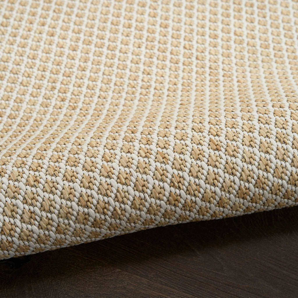 Details: Set a warm and relaxing tone with the Courtyard Collection. These elegantly understated outdoor rugs feature subtly textured geometric patterns in fashionable palettes designed to anchor modern and contemporary decor. Flat woven polypropylene fibers stand up to heavy traffic and are easy to clean: simply hose-rinse and air dry. Courtyard rugs are ideal for your porch, patio, or any indoor space. With its striking geometric pattern, this Courtyard Collection outdoor rug exudes contemporary style. Its subtly textured surface is crafted in natural beige for a seamless complement to modern settings. Machine made from a blend of polypropylene and polyester in a flatweave style that stands up to heavy traffic and is easily washable outdoors: just hose-rinse and air dry.