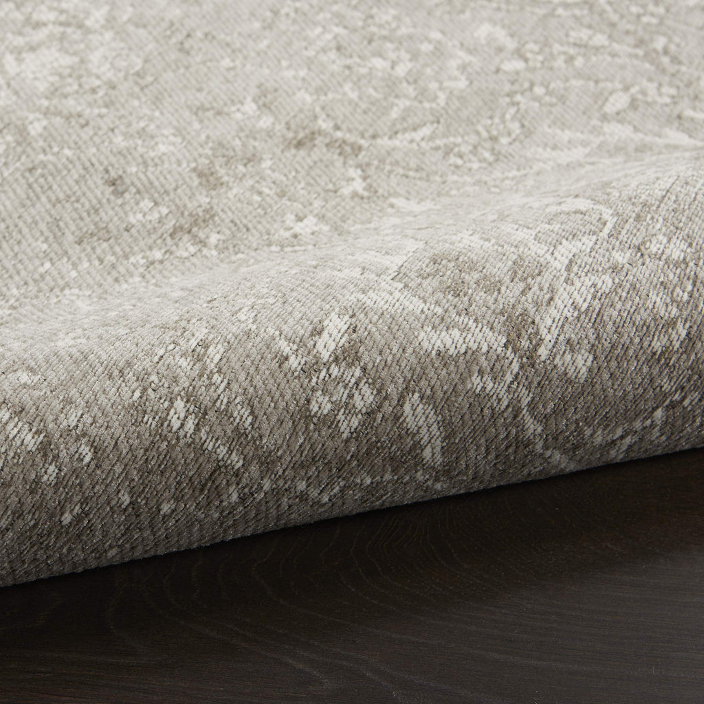 Details: Soft and sensual with a sumptuous chenille pile, the Nourison Damask Collection enhances the home with elegant comfort. Conceived in a palette of perfectly balanced contemporary neutrals, these refined, jacquard-woven area rugs are supremely versatile. The richly detailed fleurs-de-lys patterns add classic finesse with a deft contemporary feel. Dramatic yet subtle, these area rugs make superb accents or room-defining anchors for the stylish home. Edged with slender ribbon borders for a modern finish. A classic jacquard pattern with artful fading technique gives this lush Damask Collection area rug a vintage look that works equally well in traditional or modern décor. Its borderless design, serged edge and distressed surface create a casual yet luxurious fashion statement. Power-loomed in a low-shed poly-cotton blend, in a cloud-soft light grey.