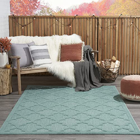 Details: Refresh your home with the stylish designs showcased in the Nourison Easy Care Rug Collection. Featuring a flatweave ground with a softly textured high-low pattern, these indoor/outdoor rugs bring pleasing dimension to just about any space – from the living room, entryway, or kitchen to the porch, patio, deck, or balcony. Machine made from durable, low-shed, easy-clean fibers that are great in busy households and for all seasons spent outdoors. Ground your indoor or outdoor seating area in the stylish appeal of this indoor/outdoor rug from the Easy Care Collection. With a soft blue backdrop that showcases multiple flatweave styles, enhanced by a raised Moroccan trellis pattern in teal blue, this contemporary rug adds an appealing sense of depth to your surroundings. Place it in your living room, dining room, entryway, or favorite outdoor space such as the patio, porch, or deck for an instant style boost. Machine-made from durable, low-shed fibers that are easy to clean, making this a great choice for all seasons spent outdoors.