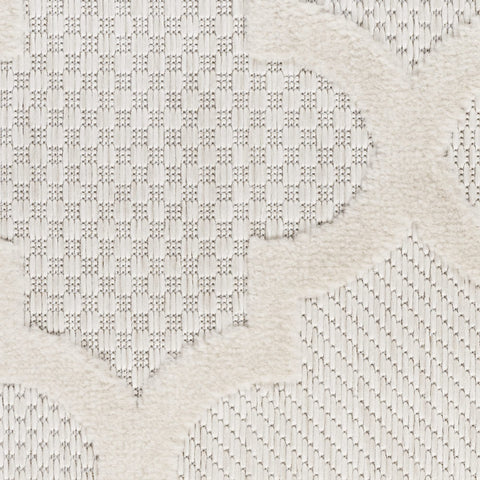 Details: Refresh your home with the stylish designs showcased in the Nourison Easy Care Rug Collection. Featuring a flatweave ground with a softly textured high-low pattern, these outdoor rugs bring pleasing dimension to just about any space – from the living room, entryway, or kitchen to the porch, patio, deck, or balcony. Machine made from durable, low-shed, easy-clean fibers that are great in busy households and for all seasons spent outdoors. Ground your indoor or outdoor seating area in the stylish appeal of this outdoor rug from the Easy Care Collection. With a white backdrop that showcases multiple flatweave styles, enhanced by a raised Moroccan trellis pattern in ivory, this contemporary rug adds an appealing sense of depth to your surroundings. Place it in your living room, dining room, entryway, or favorite outdoor space such as the patio, porch, or deck for an instant style boost. Machine-made from durable, low-shed fibers that are easy to clean, making this a great choice for all seasons spent outdoors.