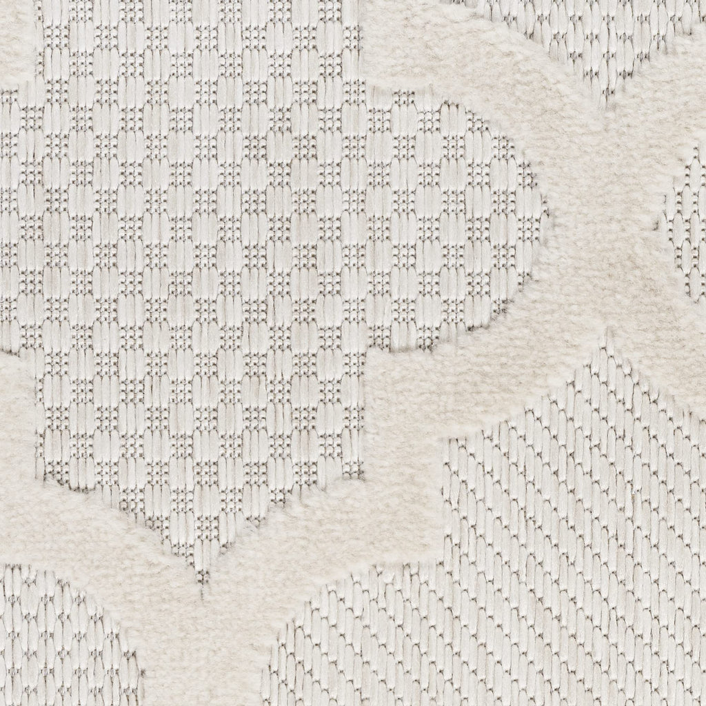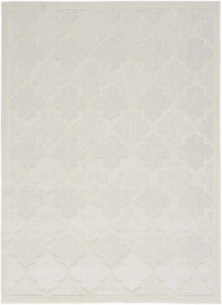 Details: Refresh your home with the stylish designs showcased in the Nourison Easy Care Rug Collection. Featuring a flatweave ground with a softly textured high-low pattern, these indoor/outdoor rugs bring pleasing dimension to just about any space – from the living room, entryway, or kitchen to the porch, patio, deck, or balcony. Machine made from durable, low-shed, easy-clean fibers that are great in busy households and for all seasons spent outdoors. Ground your indoor or outdoor seating area in the stylish appeal of this indoor/outdoor rug from the Easy Care Collection. With a white backdrop that showcases multiple flatweave styles, enhanced by a raised Moroccan trellis pattern in ivory, this contemporary rug adds an appealing sense of depth to your surroundings. Place it in your living room, dining room, entryway, or favorite outdoor space such as the patio, porch, or deck for an instant style boost. Machine-made from durable, low-shed fibers that are easy to clean, making this a great choice for all seasons spent outdoors.