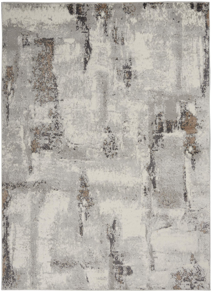 - Ultra-modern abstract area rug design in grey, ivory, charcoal, and taupe
