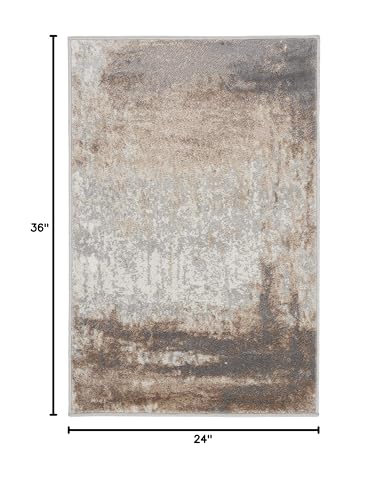Details: Vintage style takes a modern step forward in the Elation Collection. Classic patterns in color rich palettes make each Elation area rug a chic foundation for your decor. Expertly crafted of low-profile polypropylene and polyester fibers for lasting comfort, easy cleaning, and soft texture.Features Visually stunning blend of vintage distressing and abstract patterns complement contemporary decorMachine made low pile is durable, easy to clean, soft to the touchUnique area rug design in grey, beige, brown, and ivory hues are a chic foundation in living room, bedroom, or home officeDue to the detailed construction of our rugs, both handmade and machine-made, sizes may vary by up to three inches in width or length.Rug pad recommendedBrand: NourisonCollection: ElationColor: Grey IvorySize: 2' x 3'Shape: RectangleConstruction: Machine madeConstruction Technique: Power-loomedMaterial: 70% Polypropylene, 30% PolyesterShedding: Low sheddingNon-Slip Back: NoLatex Free: NoBacking: LatexBorder: Borderless designMade In Turkey