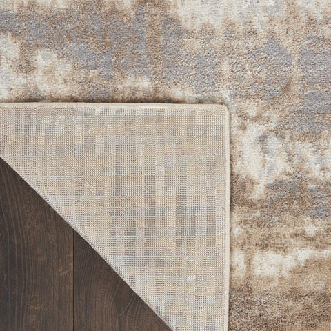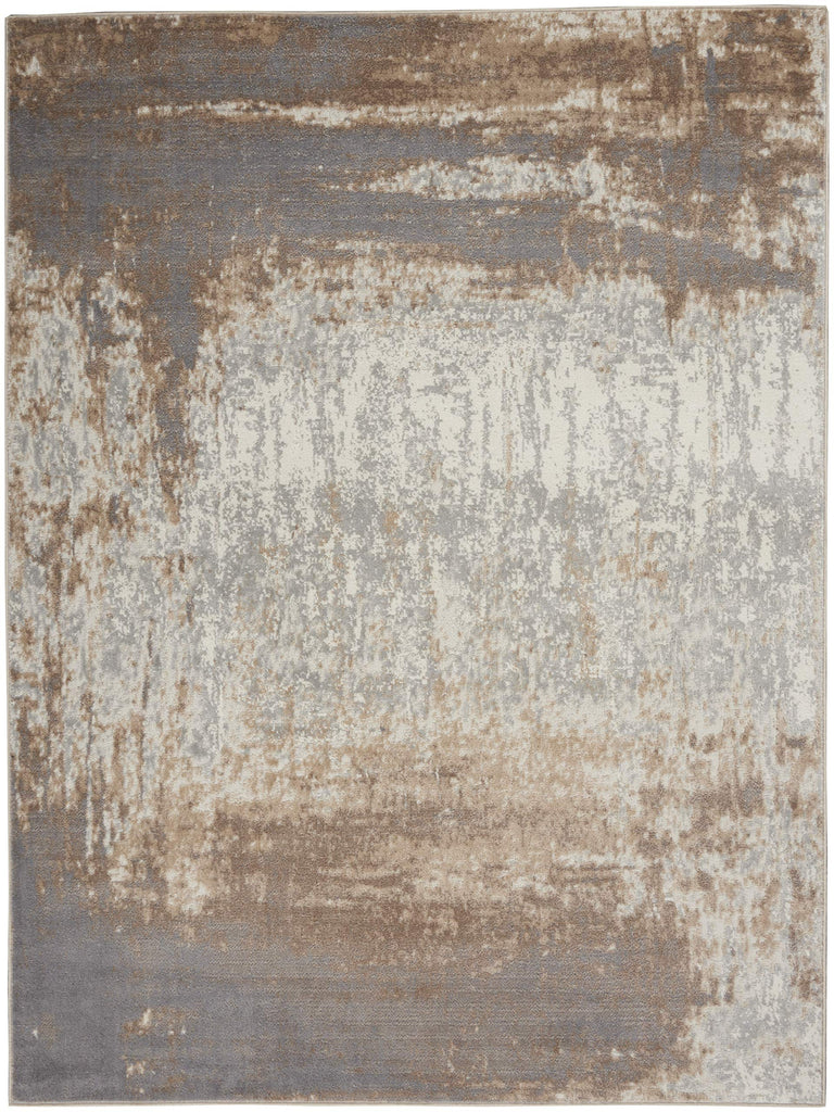 - Unique area rug design in grey, beige, brown, and ivory hues are a chic foundation in living room, bedroom, or home office