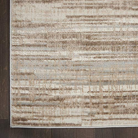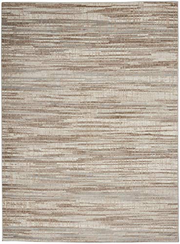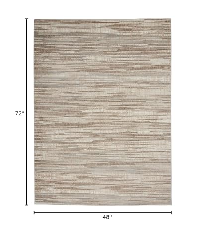 Details: Add a touch of modern elegance to your living space with this Nourison Elation Abstract Ivory Grey area rug. Measuring 4' x 6', this machine-made, low pile rug is perfect for adults and boasts a durable, easy-to-clean surface that's soft to the touch. Its abstract design in neutral ivory, beige, and gray tones makes it a versatile addition to rustic glam or contemporary settings. Ideal for use in the living room, bedroom, or home office, this area rug features easy-care fibers and serged edges. A rug pad is recommended for best results. Care instructions include vacuuming regularly without a beater bar, spot cleaning with a damp cloth, and professional cleaning. This indoor area rug is stain-resistant and comes in a rectangular shape. Enhance your interior decor with this chic and practical Nourison Elation Abstract Ivory Grey area rug.