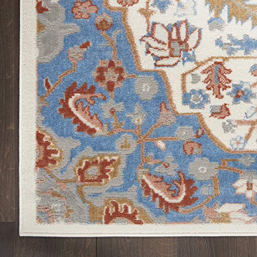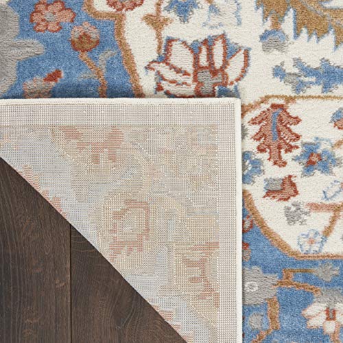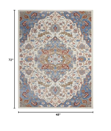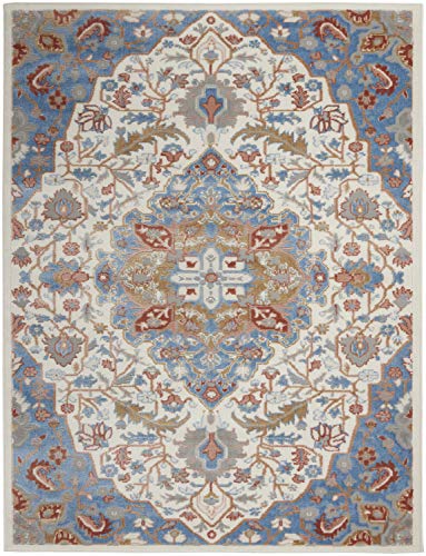 Details: Vintage style takes a modern step forward in the Elation Collection. Classic patterns in color rich palettes make each Elation area rug a chic foundation for your decor. Expertly crafted of low-profile polypropylene and polyester fibers for lasting comfort, easy cleaning, and soft texture. Create a welcoming environment in your living room, bedroom, dining room, or home office with this Elation Collection area rug. A Persian-inspired floral medallion in rich blue and ivory hues add a soft and elegant vibe to boho chic, farmhouse, and contemporary decor. This vintage-inspired design is machine made of polypropylene and polyester for soft texture, easy cleaning, and lasting comfort.