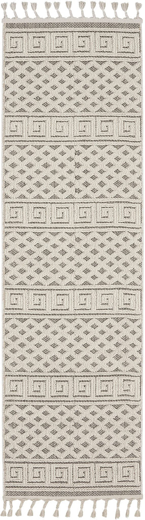 Details: The Elwood Area Rug Collection presents a variety of geometric designs to stunning effect. Precision-looped polypropylene fibers easily complement the modern aesthetic through a tastefully curated mix of neutral tones finished with fringe edges for a global touch. Choose from large rugs to suit spaces such as your living room or family room, runners for the hallway, or standard sizes perfect for your bedroom, home office, or small space decorating. Create a sense of harmony with this geometric rug from the Elwood Collection. Drawing inspiration from classic lattice and Greek key patterns, its balanced design is presented in crisp tones of grey and ivory for an eye-catching effect. Machine-made from low-shed, loop-pile polypropylene fibers finished with braided fringe edges.