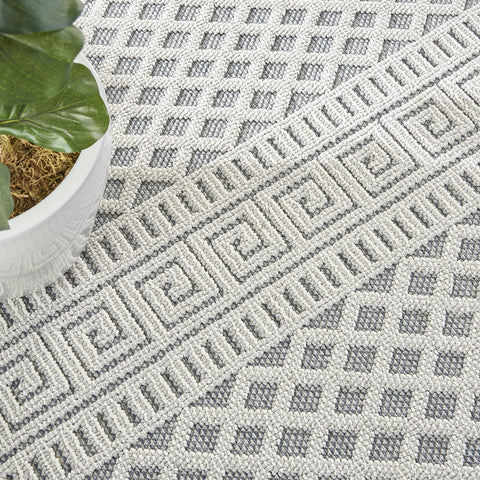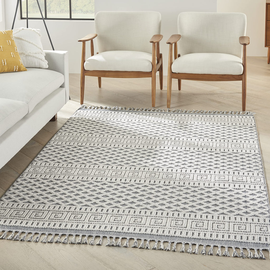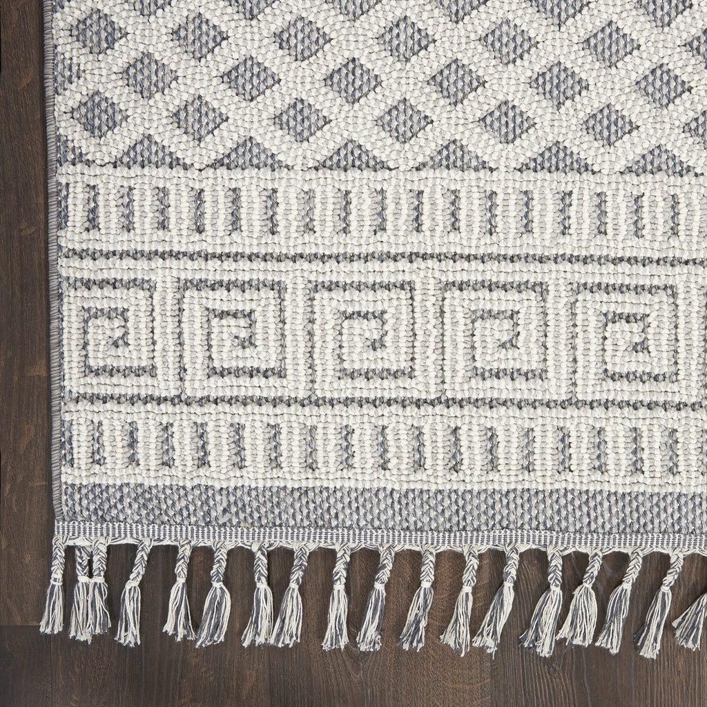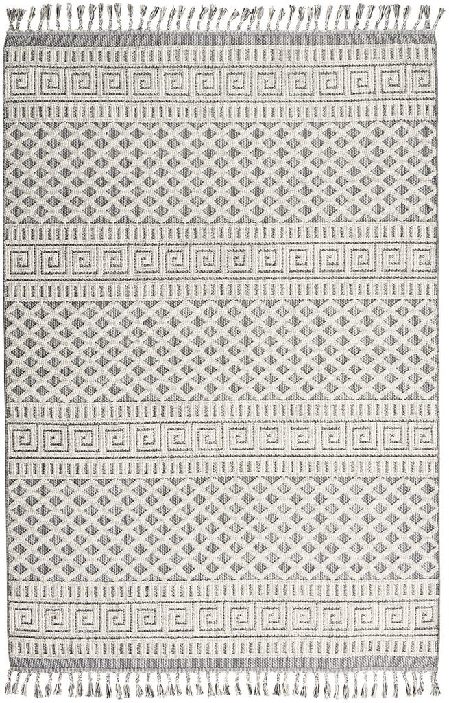 Details: The Elwood Area Rug Collection presents a variety of geometric designs to stunning effect. Precision-looped polypropylene fibers easily complement the modern aesthetic through a tastefully curated mix of neutral tones finished with fringe edges for a global touch. Choose from large rugs to suit spaces such as your living room or family room, runners for the hallway, or standard sizes perfect for your bedroom, home office, or small space decorating. Create a sense of harmony with this geometric rug from the Elwood Collection. Drawing inspiration from classic lattice and Greek key patterns, its balanced design is presented in crisp tones of ivory and slate blue for an eye-catching effect. Machine-made from low-shed, loop-pile polypropylene fibers finished with braided fringe edges.