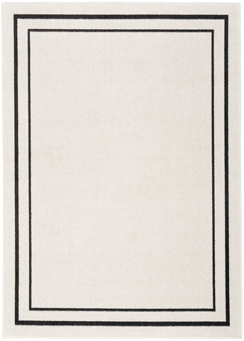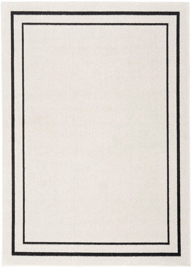 Details: Busy, active lifestyles demand fuss-free décor, and this outdoor rug collection has it all. Nourison Essentials area rugs give you everything you want, and more! These handsome, solid color and patterned area rugs are crafted for rugged performance, but never sacrifice style for function. With a low cut pile, each Essentials rug is designed to withstand heavy traffic, including kids and pets. You'll appreciate the durability, easy care, and soft texture of this contemporary rug collection in a wide range of colors and sizes to fit every indoor and outdoor space. Ideal for your porch, patio, balcony, poolside and deck, or living room, dining room, and other gathering places. 100% polypropylene fibers can be vacuumed, hose-rinsed and air-dried. For even longer life, bring indoors during extreme weather. Add color and definition to your patio conversation space or indoor area with this contemporary ivory and black outdoor rug from the Nourison Essentials Collection. The double bordered rug design is made with softly textured, low-profile polypropylene yarns that stand up to heavy foot traffic. An ideal choice for busy households, this kid and pet-friendly rug does not shed and cleans up easily: hose-rinse spills and air-dry. To extend the life of your rug, bring it inside during extreme weather.