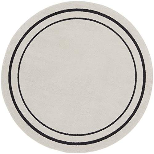 Details: Busy, active lifestyles demand fuss-free décor, and this outdoor rug collection has it all. Nourison Essentials area rugs give you everything you want, and more! These handsome, solid color and patterned area rugs are crafted for rugged performance, but never sacrifice style for function. With a low cut pile, each Essentials rug is designed to withstand heavy traffic, including kids and pets. You'll appreciate the durability, easy care, and soft texture of this contemporary rug collection in a wide range of colors and sizes to fit every indoor and outdoor space. Ideal for your porch, patio, balcony, poolside and deck, or living room, dining room, and other gathering places. 100% polypropylene fibers can be vacuumed, hose-rinsed and air-dried. For even longer life, bring indoors during extreme weather. Add color and definition to your patio conversation space or indoor area with this contemporary ivory and black outdoor rug from the Nourison Essentials Collection. The double bordered rug design is made with softly textured, low-profile polypropylene yarns that stand up to heavy foot traffic. An ideal choice for busy households, this kid and pet-friendly rug does not shed and cleans up easily: hose-rinse spills and air-dry. To extend the life of your rug, bring it inside during extreme weather.