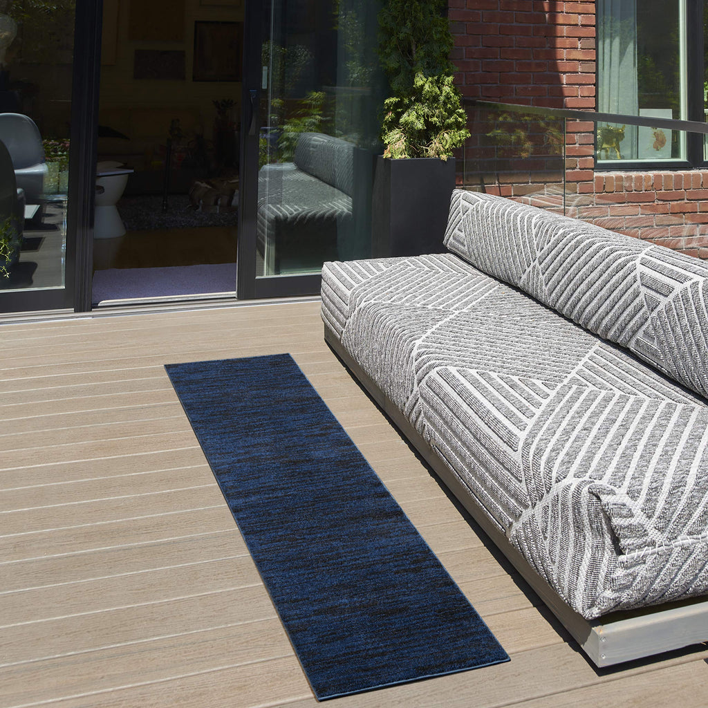 Details: Busy, active lifestyles demand fuss-free décor, and this outdoor rug collection has it all. Nourison Essentials area rugs give you everything you want, and more! These handsome, solid color and patterned area rugs are crafted for rugged performance, but never sacrifice style for function. With a low cut pile, each Essentials rug is designed to withstand heavy traffic, including kids and pets. You'll appreciate the durability, easy care, and soft texture of this contemporary rug collection in a wide range of colors and sizes to fit every indoor and outdoor space. Ideal for your porch, patio, balcony, poolside and deck, or living room, dining room, and other gathering places. 100% polypropylene fibers can be vacuumed, hose-rinsed and air-dried. For even longer life, bring indoors during extreme weather. Here's an outdoor area rug by Nourison Essentials that has it all. Enjoy rugged durability, easy care, and soft hand feel in a rug designed for the active lifestyle. This contemporary, borderless area rug in richly marled midnight blue comes in a wide range of sizes to fit every outdoor space. Machine made with a low pile and serged edge, it will withstand heavy traffic without sacrificing comfort. An ideal choice for porch, patio, balcony, poolside and deck, or living room, dining room, family room and other gathering place around your home. This 100% polypropylene rug can be vacuumed, hose-rinsed and air-dried. To extend its life, bring it indoors during extreme weather.