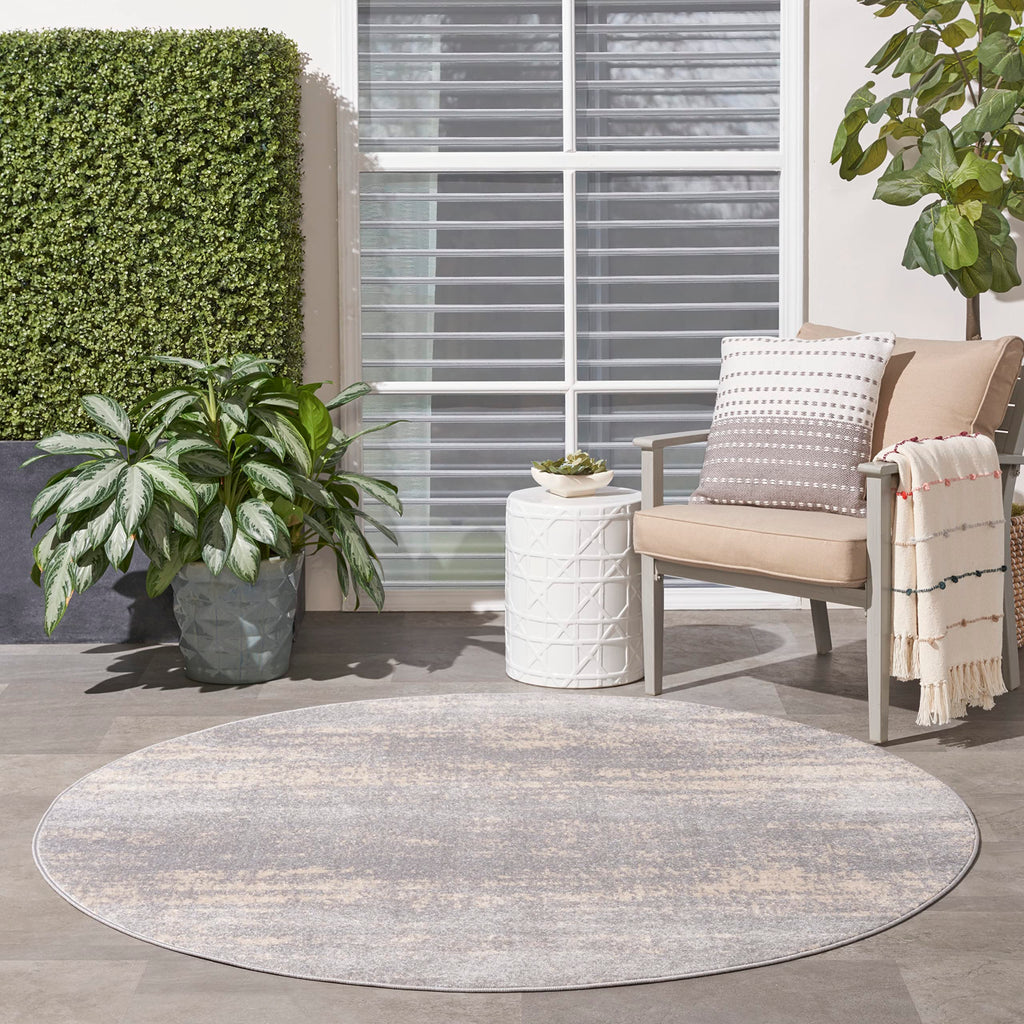Details: Busy, active lifestyles demand fuss-free décor, and this outdoor rug collection has it all. Nourison Essentials area rugs give you everything you want, and more! These handsome, solid color and patterned area rugs are crafted for rugged performance, but never sacrifice style for function. With a low cut pile, each Essentials rug is designed to withstand heavy traffic, including kids and pets. You'll appreciate the durability, easy care, and soft texture of this contemporary rug collection in a wide range of colors and sizes to fit every indoor and outdoor space. Ideal for your porch, patio, balcony, poolside and deck, or living room, dining room, and other gathering places. 100% polypropylene fibers can be vacuumed, hose-rinsed and air-dried. For even longer life, bring indoors during extreme weather. Bring chic style to your indoor or outdoor seating areas with this outdoor rug from the Nourison Essentials Collection. Featuring a simple abstract design, this modern rug is presented in a grey color that easily complements neutral decor. Essentials is machine-made from durable, low-profile polypropylene yarns that can be vacuumed, hose-rinsed, and air-dried. To extend the life of your rug, bring it inside during extreme weather.