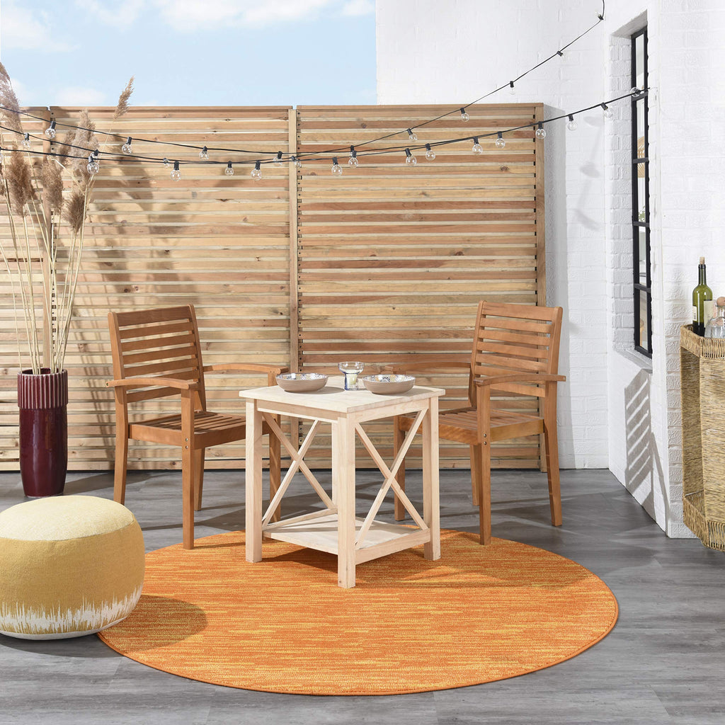 Details: Busy, active lifestyles demand fuss-free décor, and this outdoor rug collection has it all. Nourison Essentials area rugs give you everything you want, and more! These handsome, solid color and patterned area rugs are crafted for rugged performance, but never sacrifice style for function. With a low cut pile, each Essentials rug is designed to withstand heavy traffic, including kids and pets. You'll appreciate the durability, easy care, and soft texture of this contemporary rug collection in a wide range of colors and sizes to fit every indoor and outdoor space. Ideal for your porch, patio, balcony, poolside and deck, or living room, dining room, and other gathering places. 100% polypropylene fibers can be vacuumed, hose-rinsed and air-dried. For even longer life, bring indoors during extreme weather. Here's an outdoor area rug by Nourison Essentials that has it all. Enjoy rugged durability, easy care, and soft hand feel in a rug designed for the active lifestyle. This contemporary, borderless area rug in vivacious orange sunburst comes in a wide range of sizes to fit every outdoor space. Machine made with a low pile and serged edge, it will withstand heavy traffic without sacrificing comfort. An ideal choice for porch, patio, balcony, poolside and deck, or living room, dining room, family room and other gathering place around your home. This 100% polypropylene rug can be vacuumed, hose-rinsed and air-dried. To extend its life, bring it indoors during extreme weather.