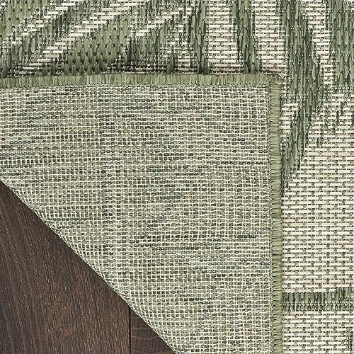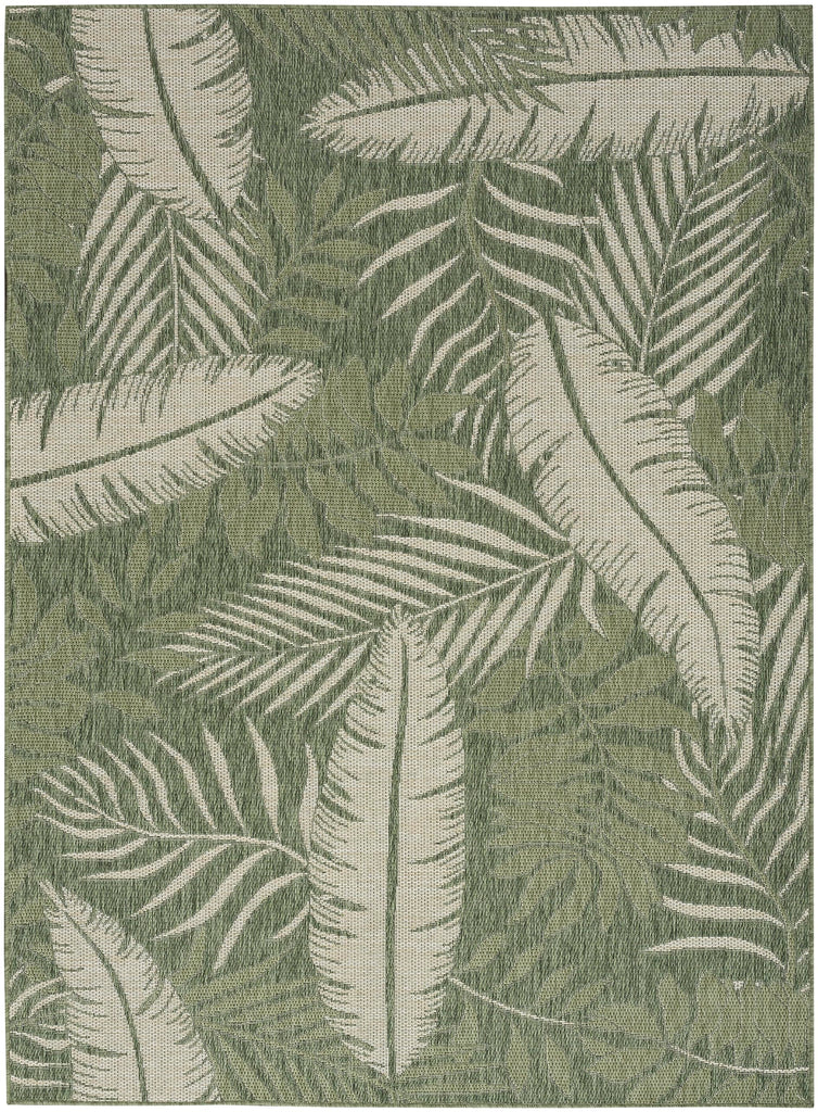 Details: Tropical with a touch of modern, the Garden Oasis Collection of outdoor rugs transforms any space into a breezy retreat. With a modern color palette and low-maintenance construction, these flat weave rugs are built for performance but don’t sacrifice style. The lightweight construction lays flat quickly and doesn’t shed, so you can spend less time waiting for your space to come together and get right to relaxing with friends and family. Enjoy vacation vibes from the comfort of your backyard with this green and ivory outdoor rug from the Garden Oasis Collection. The oversized tropical leaf pattern evokes feelings of lounging by the beach, with subtle tonal variations that add rhythmic appeal. Machine-made from polypropylene yarns for lasting style and all-weather performance, this flatweave rug is great for both indoor and outdoor spaces.