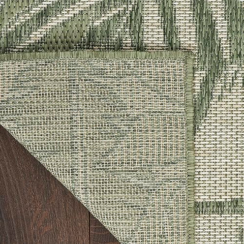Details: Tropical with a touch of modern, the Garden Oasis Collection of outdoor rugs transforms any space into a breezy retreat. With a modern color palette and low-maintenance construction, these flat weave rugs are built for performance but don’t sacrifice style. The lightweight construction lays flat quickly and doesn’t shed, so you can spend less time waiting for your space to come together and get right to relaxing with friends and family. Enjoy vacation vibes from the comfort of your backyard with this green and ivory outdoor rug from the Garden Oasis Collection. The oversized tropical leaf pattern evokes feelings of lounging by the beach, with subtle tonal variations that add rhythmic appeal. Machine-made from polypropylene yarns for lasting style and all-weather performance, this flatweave rug is great for both indoor and outdoor spaces.