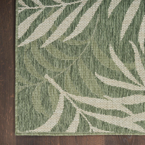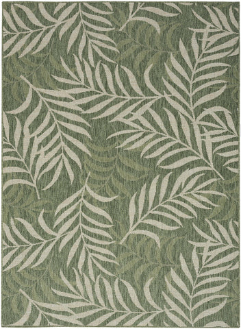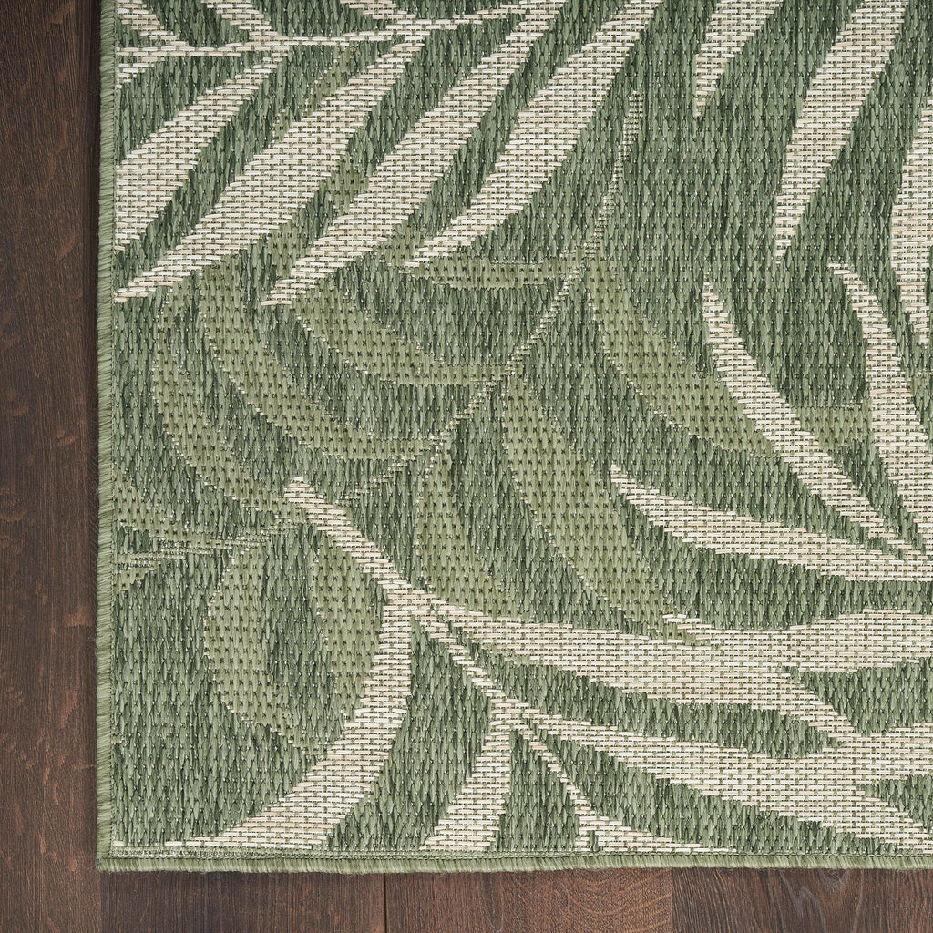 Details: Tropical with a touch of modern, the Garden Oasis Collection of outdoor rugs transforms any space into a breezy retreat. With a modern color palette and low-maintenance construction, these flat weave rugs are built for performance but don’t sacrifice style. The lightweight construction lays flat quickly and doesn’t shed, so you can spend less time waiting for your space to come together and get right to relaxing with friends and family. Roll out this Garden Oasis outdoor rug on your patio or balcony and watch your space transform into a lush, tropical getaway! The overlapping palm leaf pattern creates movement, while the tonal green and ivory palette adds a modern feel. Machine-made from polypropylene in a flat weave style that’s not just easy to lay out but is ultra-easy to clean. Living in a busy household with constant foot traffic? Try placing this rug in your living room, bathroom, or entryway for a fuss-free way to refresh your space.