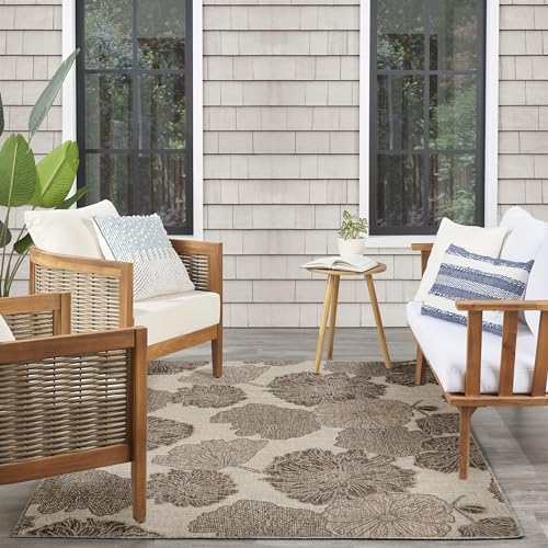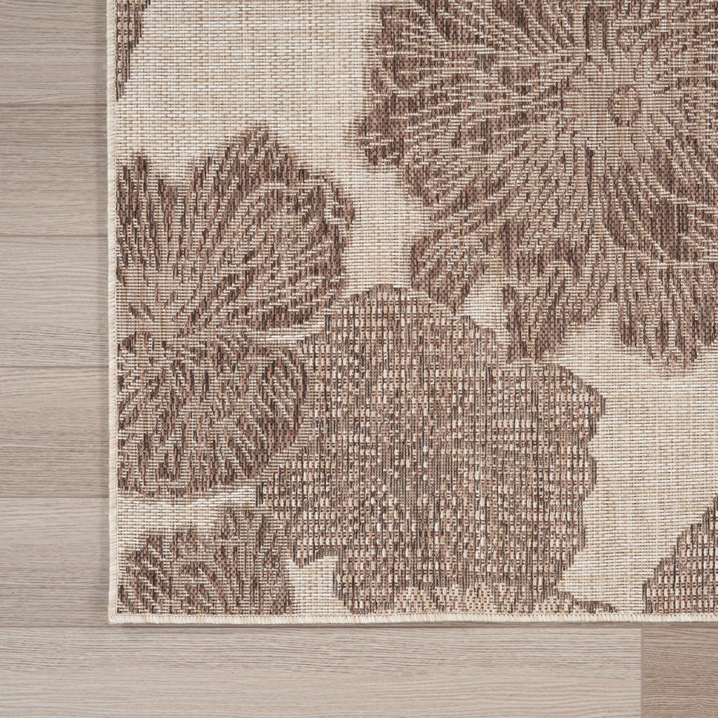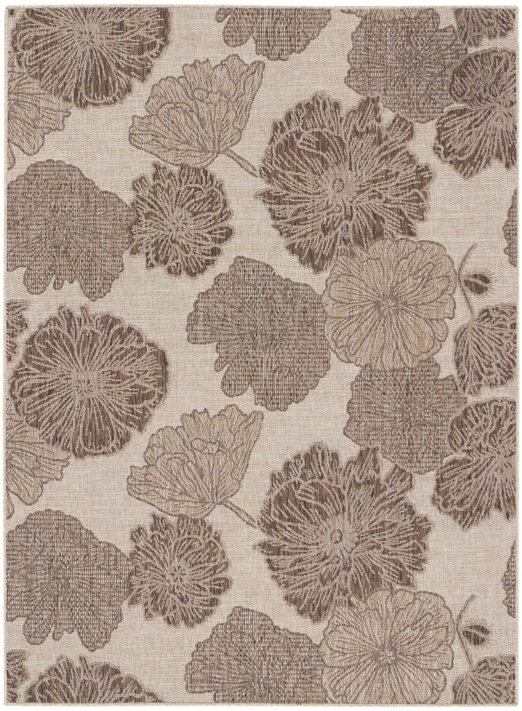 Details: Tropical with a touch of modern, the Garden Oasis Collection of outdoor rugs transforms any space into a breezy retreat. With a modern color palette and low-maintenance construction, these flat weave rugs are built for performance but don’t sacrifice style. The lightweight construction lays flat quickly and doesn’t shed, so you can spend less time waiting for your space to come together and get right to relaxing with friends and family. Let Spring bloom all year round with this natural brown Garden Oasis Collection outdoor rug. Bold blooming flowers adorn its flatwoven surface in a bold color contrast sure to wow friends and family. This versatile floral rug is a stylish, low-maintenance way to refresh your space in an instant. Place it on your patio, porch, balcony, or deck to create cozier outdoor conversation spaces. This rug is also great for use in the busiest rooms inside your house, including the kitchen, living room, and bathroom.