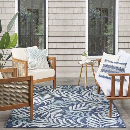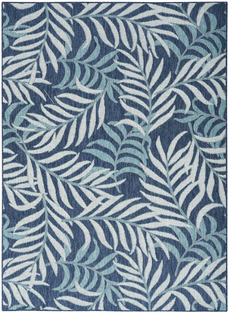 Details: Tropical with a touch of modern, the Garden Oasis Collection of outdoor rugs transforms any space into a breezy retreat. With a modern color palette and low-maintenance construction, these flat weave rugs are built for performance but don’t sacrifice style. The lightweight construction lays flat quickly and doesn’t shed, so you can spend less time waiting for your space to come together and get right to relaxing with friends and family. Roll out this Garden Oasis outdoor rug on your patio or balcony and watch your space transform into a lush, tropical getaway! The overlapping palm leaf pattern creates movement, while the tonal ivory and navy-blue palette adds a modern feel. Machine-made from polypropylene in a flat weave style that’s not just easy to lay out but is ultra-easy to clean. Living in a busy household with constant foot traffic? Try placing this rug in your living room, bathroom, or entryway for a fuss-free way to refresh your space.