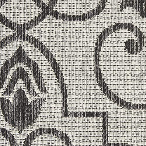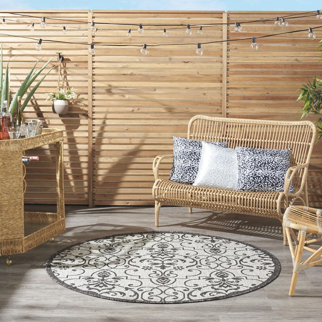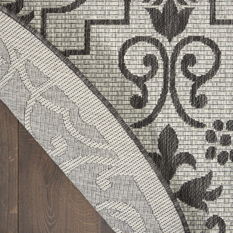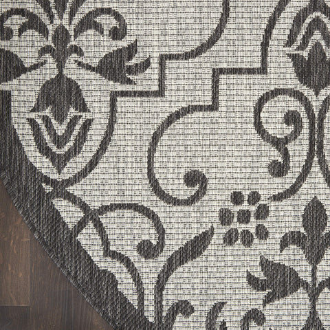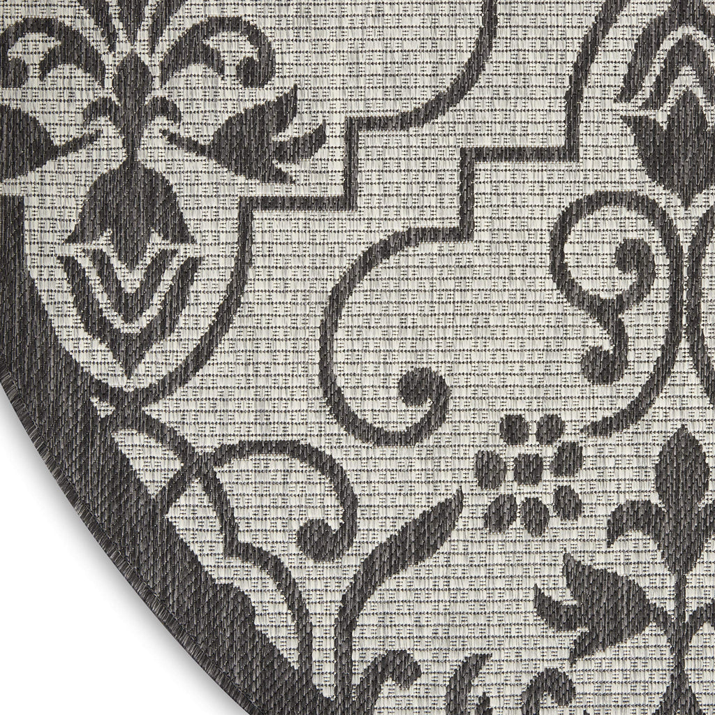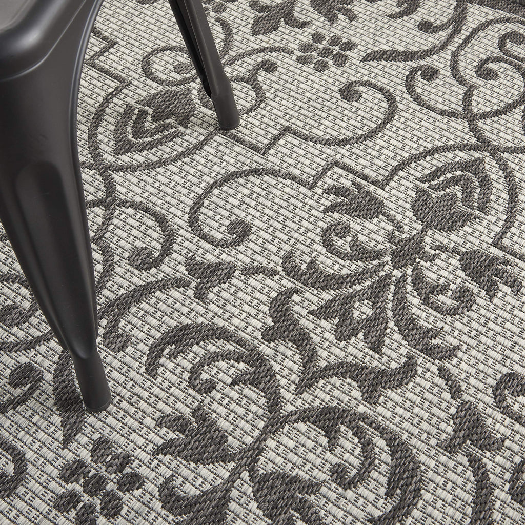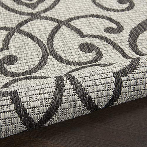 Details: Stunning in its chic simplicity, the Garden Party Collection of indoor/outdoor area rugs from Nourison is flat woven for splendid tone, texture, and durability. Featuring a range of marvelous neutral color palettes in classic and contemporary designs, these remarkable rugs will slip seamlessly into any setting. A classic scrolling leaf and vine design takes a thrilling turn when revealed in dramatic shades of ivory and charcoal. This Country Side indoor/outdoor area rug from Nourison is flat woven from a premium 100% polypropylene to withstand all weather and wear with a look and feel that are utterly fabulous.