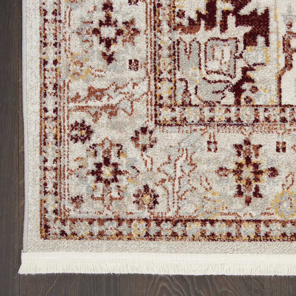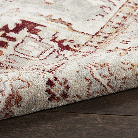 Details: Elegant and timeless, the Geneva Collection transports the fine Persian designs of yesteryear to the modern era. These transitional rugs showcase intricate floral center medallion patterns in an array of rich and muted color palettes to fit your design needs. Machine-made of silky-smooth polyester, Geneva is finished with fringed edges and an abrash effect for an extra touch of vintage style. Traditional style, reimagined. This transitional rug from the Geneva Collection celebrates Persian design through its delicate floral medallion pattern, ornamental border, and fringe edges. A palette of brick red and silver grey easily complements contemporary and vintage styles of décor. Machine-made of delightfully soft, low-pile polyester designed with ease of care in mind.