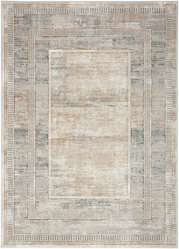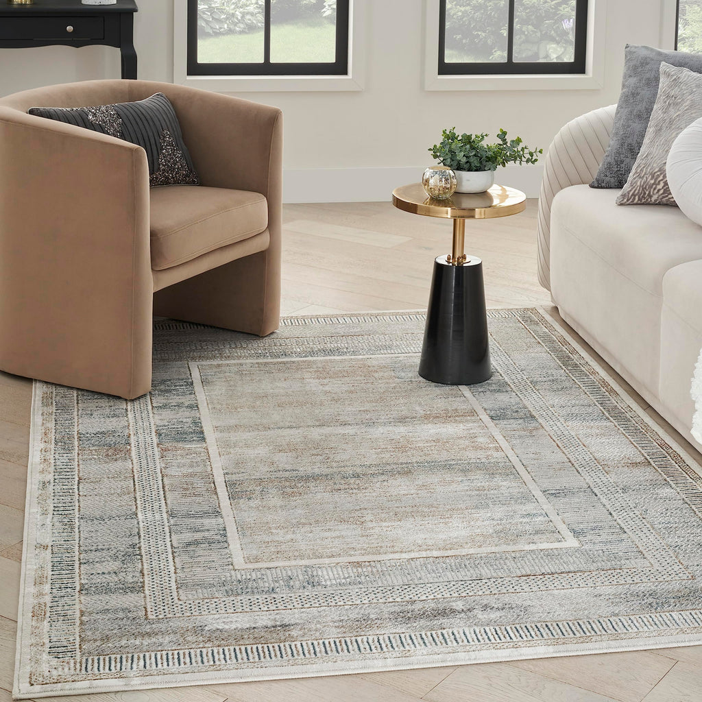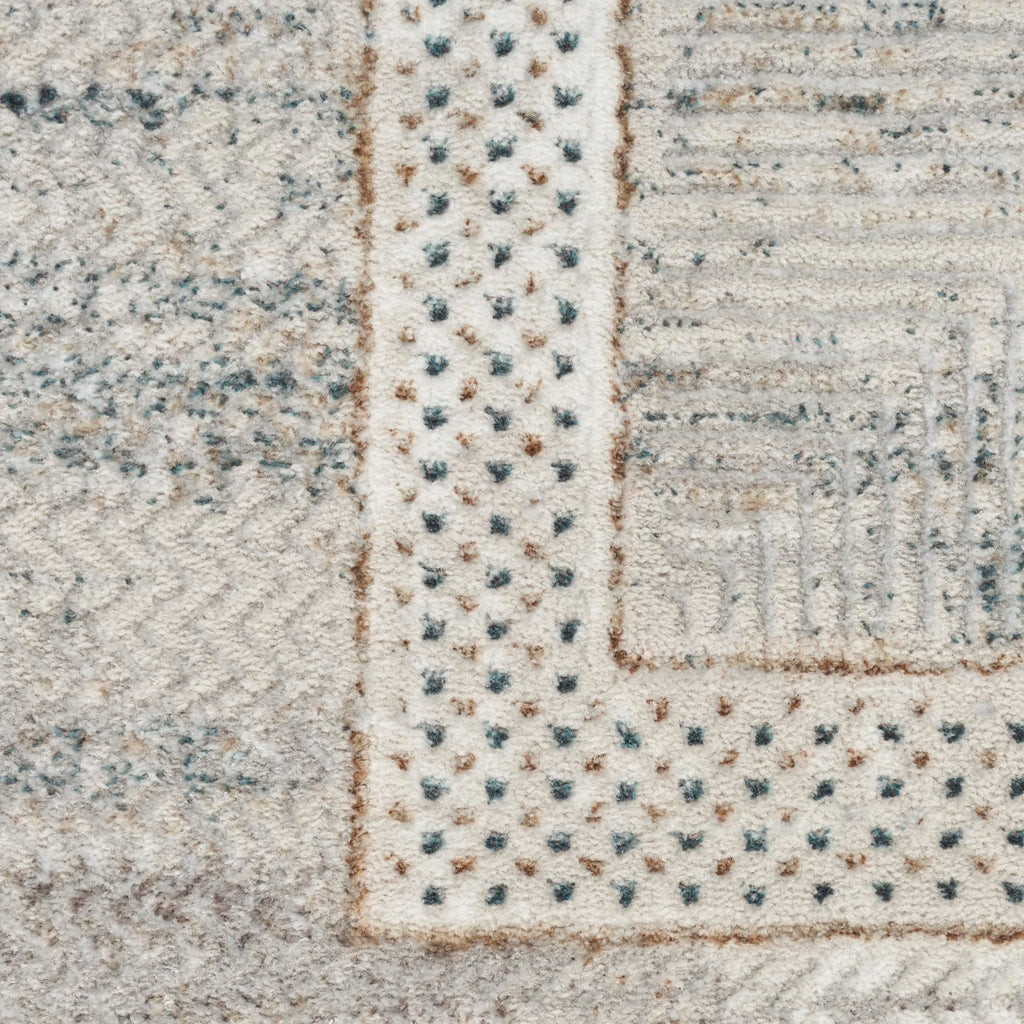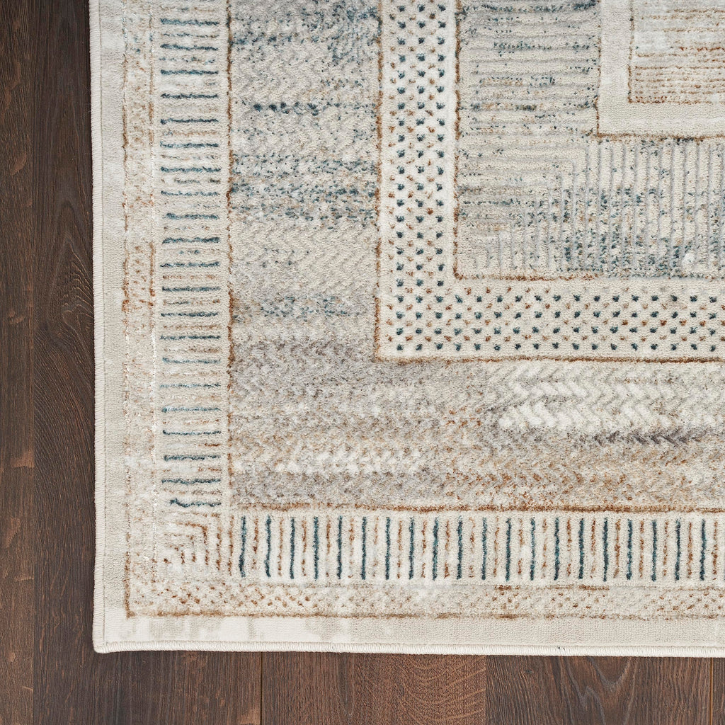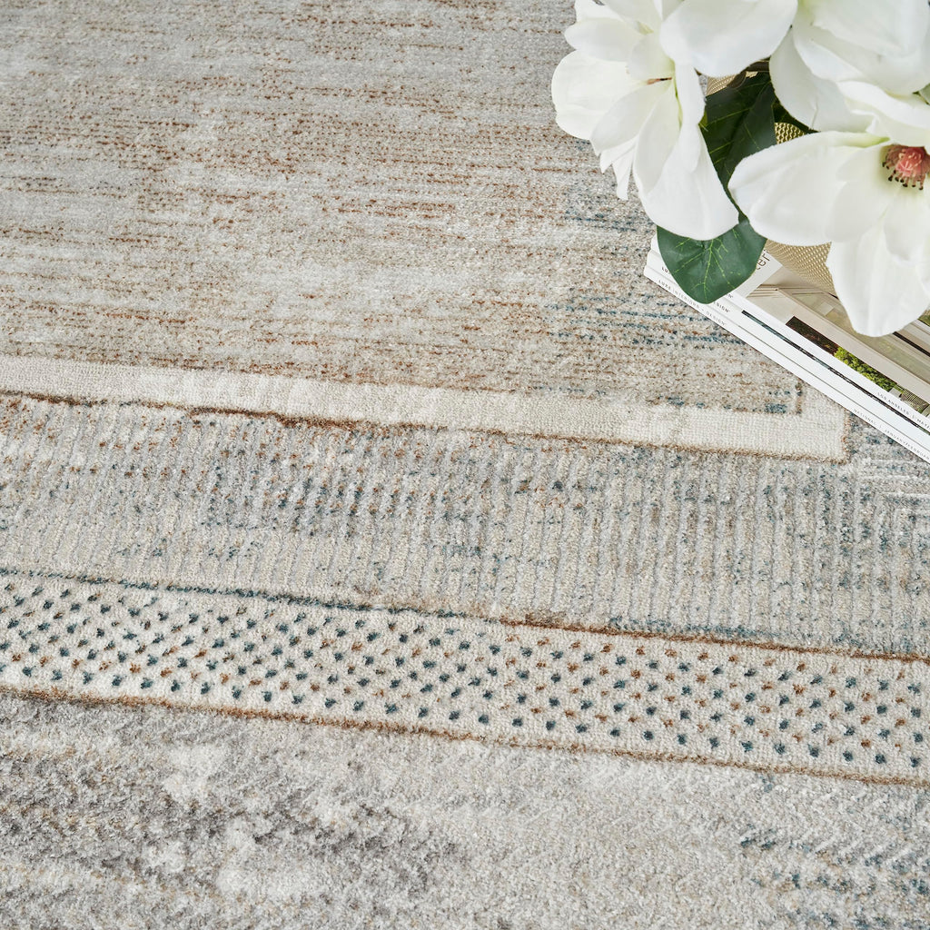 Details: The Glam Area Rug Collection embodies contemporary style. Art Deco inspired, abstract, and geometric rug patterns are finished with subtly raised accents and a glamorous shimmer that adds a brilliant look to your living room, dining room, or bedroom décor. Made from softly textured polyester yarns for easy cleaning, Glam is ideal for use in busy households with kids and pets. Create an ultra-glam foundation for your décor with this geometric rug from the Glam Collection. It features an abstract center design surrounded by a series of wide and narrow borders in ivory and grey with multicolored accents that are enhanced with subtle texture variations. Finished with a brilliant shimmer that adds visual intrigue, this contemporary rug is made from softly textured polyester.