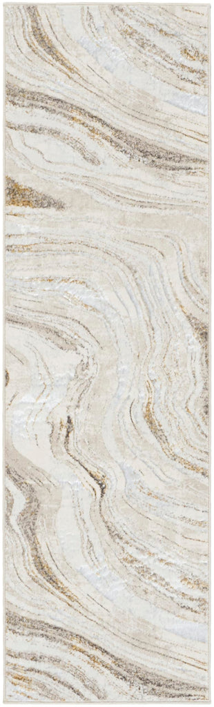 Details: The Glam Area Rug Collection embodies contemporary style. Art Deco inspired, abstract, and geometric rug patterns are finished with subtly raised accents and a glamorous shimmer that adds a brilliant look to your living room, dining room, or bedroom décor. Made from softly textured polyester yarns for easy cleaning, Glam is ideal for use in busy households with kids and pets. Bring calm with a touch of visual interest to your living room, dining room, kitchen, or bedroom with this abstract grey and gold rug from the Glam Collection. The nature-inspired design gently ripples across the softly textured surface, creating a sense of movement highlighted by shimmering accents. This modern rug is machine-made from softly textured polyester fibers in a short pile that’s easy to clean.