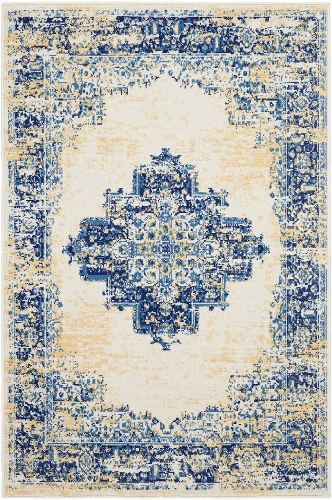 Details: Beautifully bold and gorgeously graphic, the Grafix Collection of area rugs from Nourison is destined to deliver a transfixing touch of dramatic appeal to any room. Available in an enthralling array of contemporary color palettes and power-loomed from long-lasting, easy-care polypropylene, each exciting rug is all about outstanding ease and sensational style. In intriguingly distressed shades of navy blue and white, this Grafix area rug from Nourison will elevate the elegance quotient of any room. Each rug is brilliantly bordered in traditional Persian rug style, and masterfully power loomed for a lavish feel, long wear, and low maintenance.