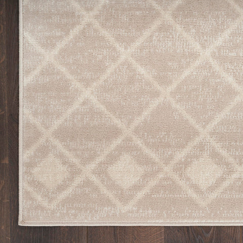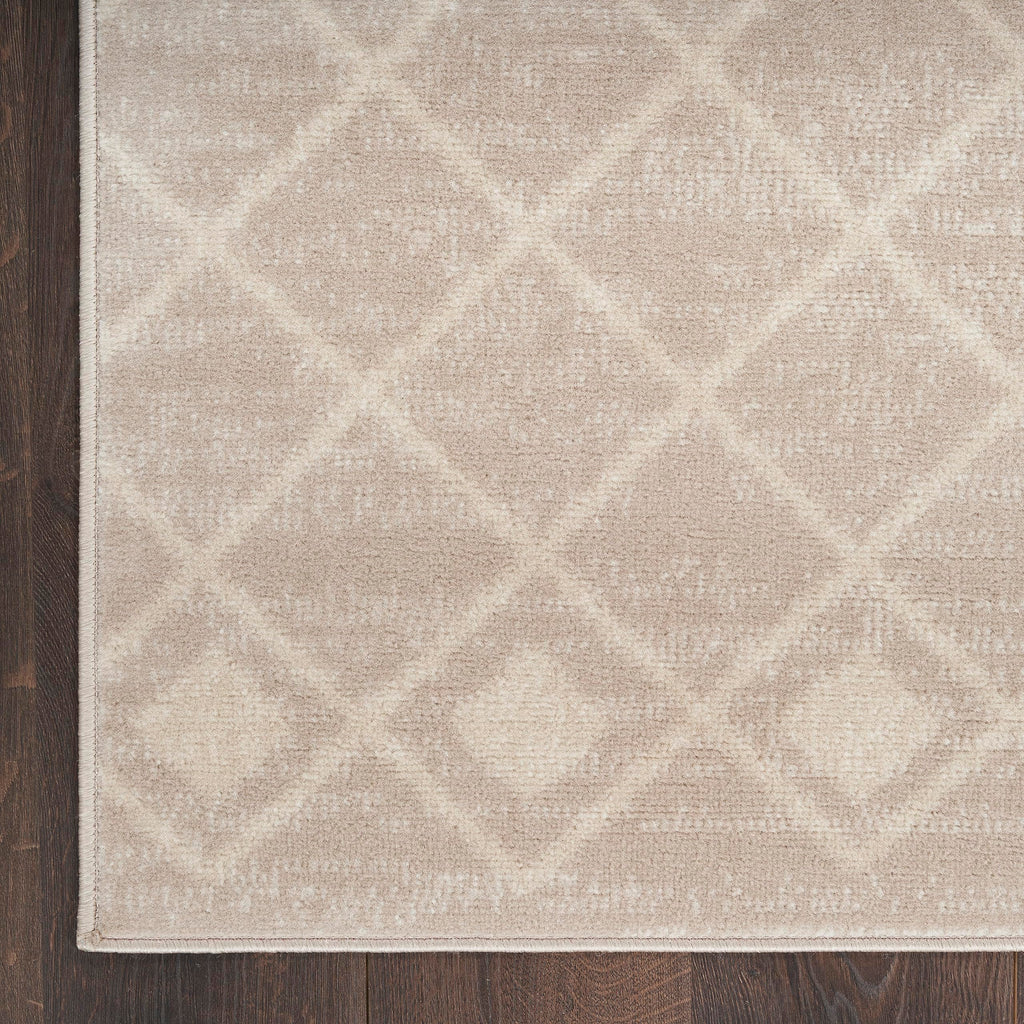 Details: Beautifully bold and gorgeously graphic, the Grafix Collection of area rugs from Nourison is destined to deliver a transfixing touch of dramatic appeal to any room. Available in an enthralling array of contemporary color palettes and power-loomed from long-lasting, easy-care polypropylene, each exciting rug is all about outstanding ease and sensational style. The Moroccan diamond bead pattern of this Grafix area rug creates a dimensional look that draws the eye and pulls a room together. The soft combination of beige and ivory creates a subtle yet stunning focal point for the contemporary home. Made from polypropylene yarns that are easy to clean, durable, and non-shedding – great for high-traffic areas and busy households with pets and young kids.