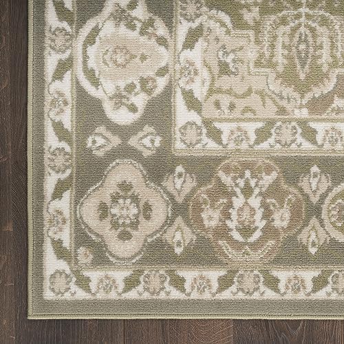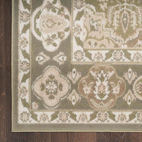 Details: Beautifully bold and gorgeously graphic, the Grafix Collection of area rugs from Nourison is destined to deliver a transfixing touch of dramatic appeal to any room. Available in an enthralling array of contemporary color palettes and power-loomed from long-lasting, easy-care polypropylene, each exciting rug is all about outstanding ease and sensational style. This Persian rug from the Grafix Collection brings old world charm to your home. With a green ogee pattern and tastefully distressed finish, this vintage-inspired rug adds instant personality to traditional and boho décor. Made from polypropylene yarns that are easy to clean, durable, and non-shedding – great for high-traffic areas and busy households with pets and young kids.
