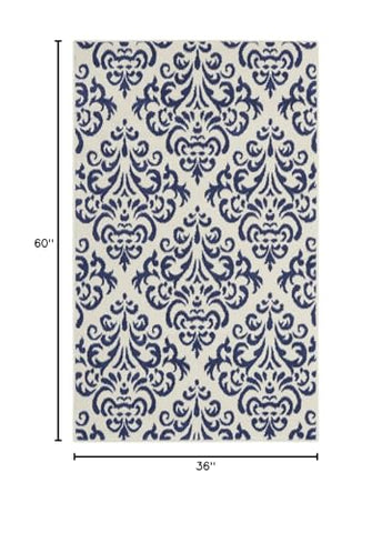 Details: Beautifully bold and gorgeously graphic, the Grafix Collection of area rugs from Nourison is destined to deliver a transfixing touch of dramatic appeal to any room. Available in an enthralling array of contemporary color palettes and power-loomed from long-lasting, easy-care polypropylene, each exciting rug is all about outstanding ease and sensational style. Damask design takes elegance to another level with glamorous, geometric precision of ornate navy patterns on a white field. Power loomed for long wear and low maintenance, this Grafix area rug from Nourison will lend a dash of drama to any room.