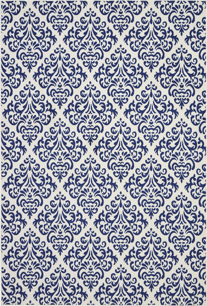 Details: Damask design takes elegance to another level with glamorous, geometric precision of ornate navy patterns on a white field. Power-loomed for long wear and low maintenance, this Grafix area rug from Nourison will lend a dash of drama to any room.