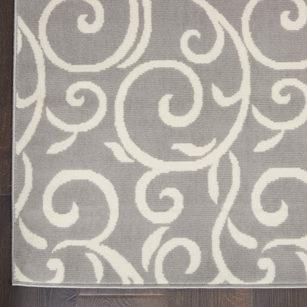 Details: "Beautifully bold and gorgeously graphic the Grafix collection of area rugs from Nourison is destined to deliver a transfixing touch of dramatic appeal to any room. Available in an enthralling array of contemporary color palettes and power loomed from a long-lasting, easy-to-care-for and fabulously-textured 100% polypropylene each exciting rug is all about outstanding ease and sensational style. " Power loomed from an enticingly-textured and remarkably resilient 100% polypropylene this Grafix area rug from Nourison features a gracefully flowing floral design in profound shades of grey, cream, crimson and blue to impart a stunning and sophisticated simplicity to any room where it resides.