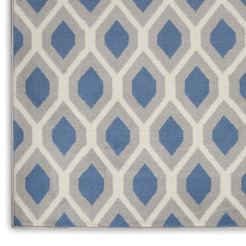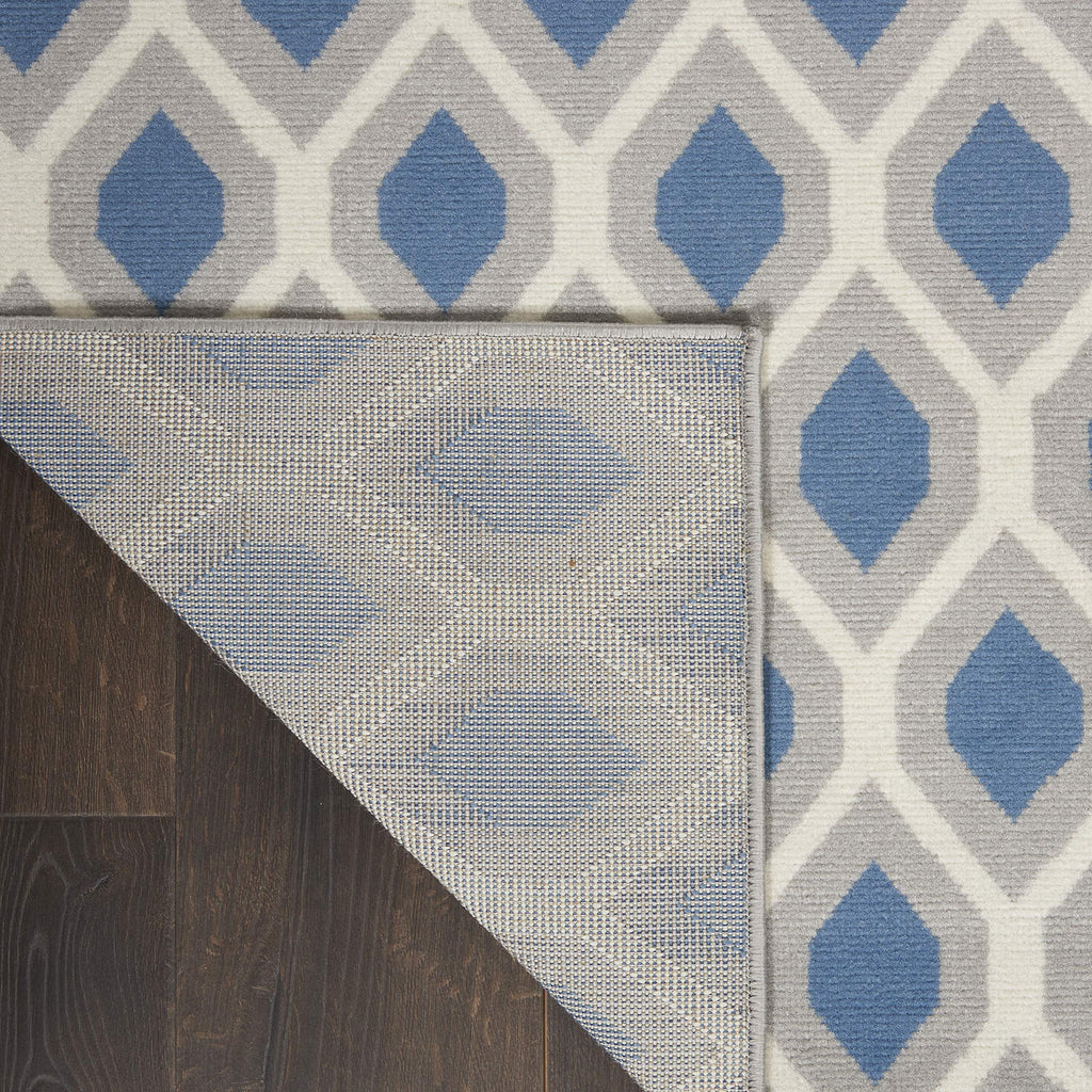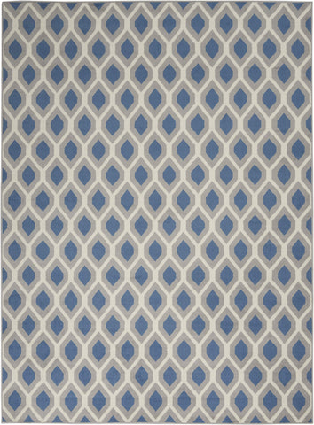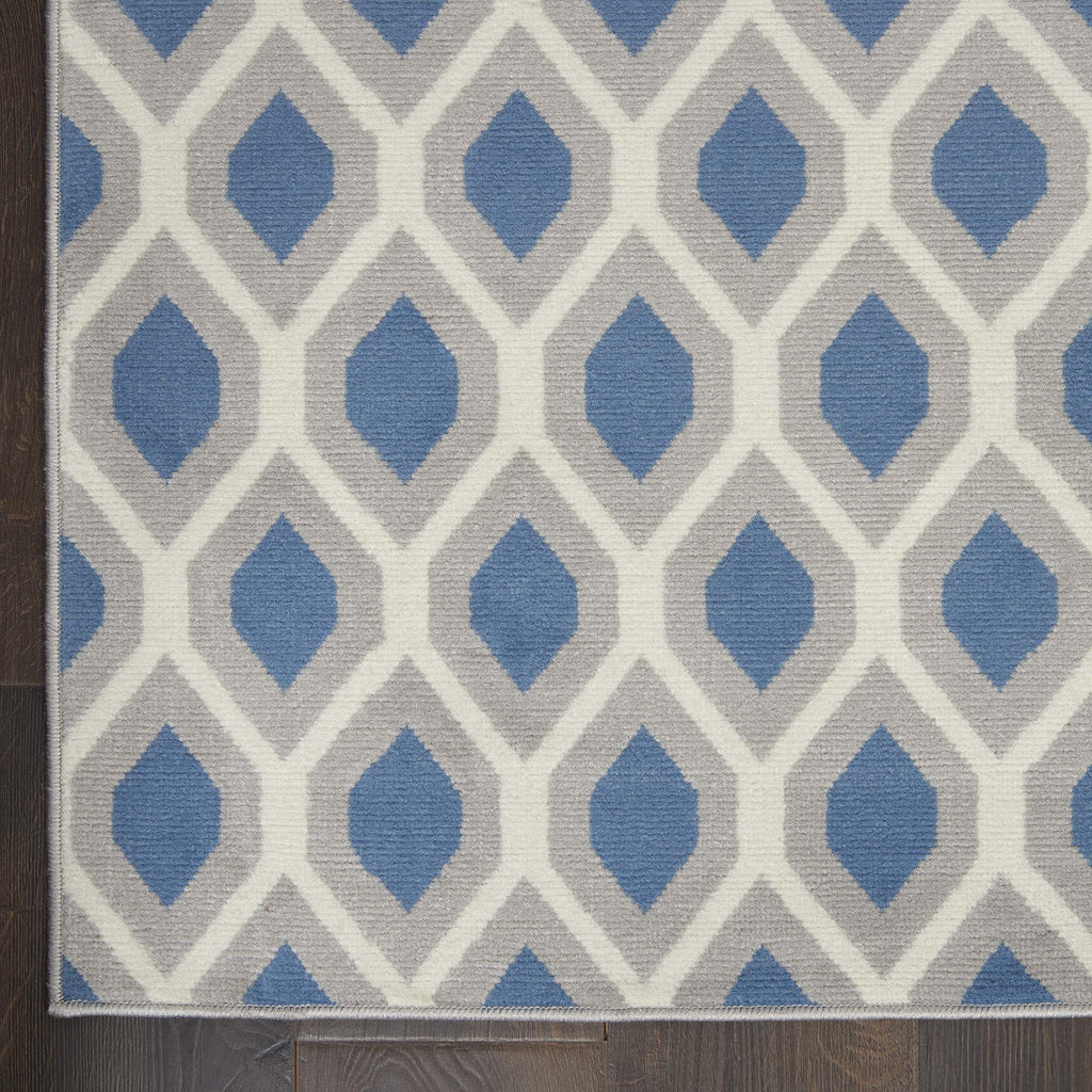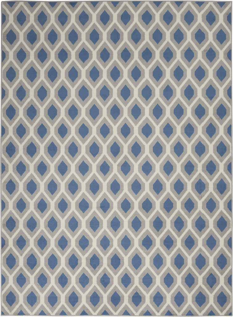 - Hexagonal lattice pattern in blue, grey, and ivory