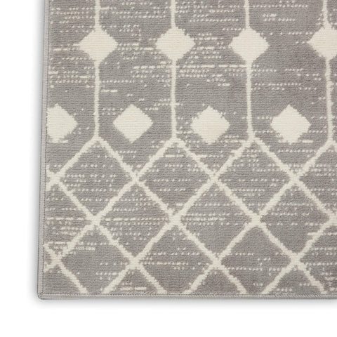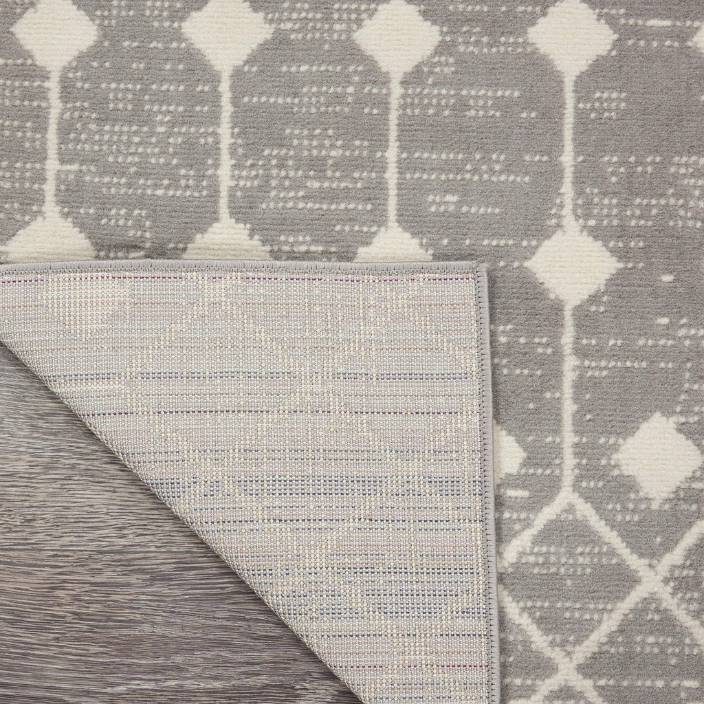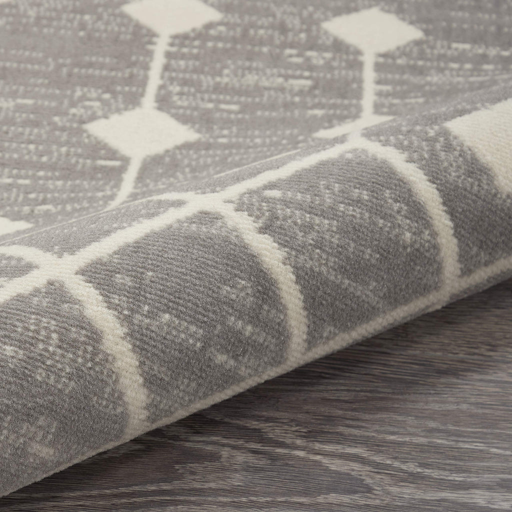 Details: Beautifully bold and gorgeously graphic, the Grafix collection of area rugs from Nourison is destined to deliver a transfixing touch of dramatic appeal to any room. These contemporary rugs are available in an enthralling array of color palettes and power-loomed from long-lasting and fabulously-textured polypropylene for outstanding ease and sensational style. The Moroccan diamond bead pattern of this Grafix area rug creates a dimensional op-art look that draws the eye and pulls a room together. The soft combination of grey and ivory creates a subtle yet stunning focal point for the contemporary home.