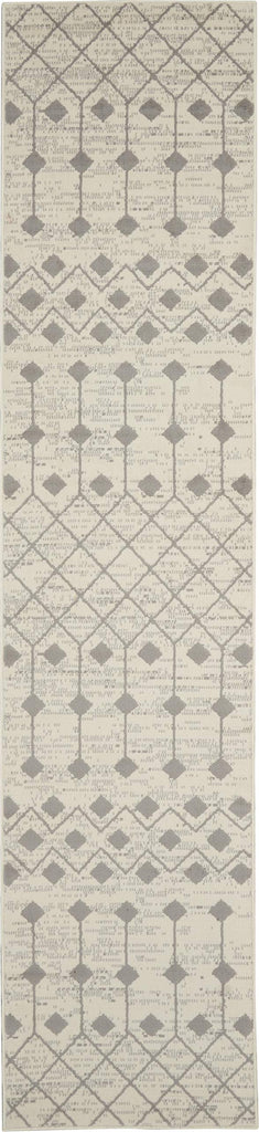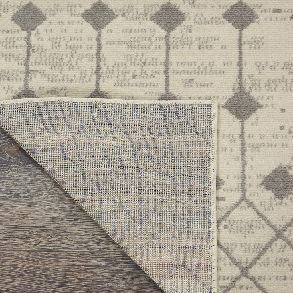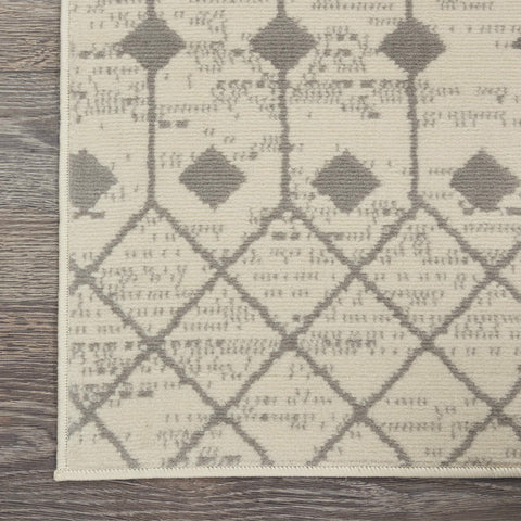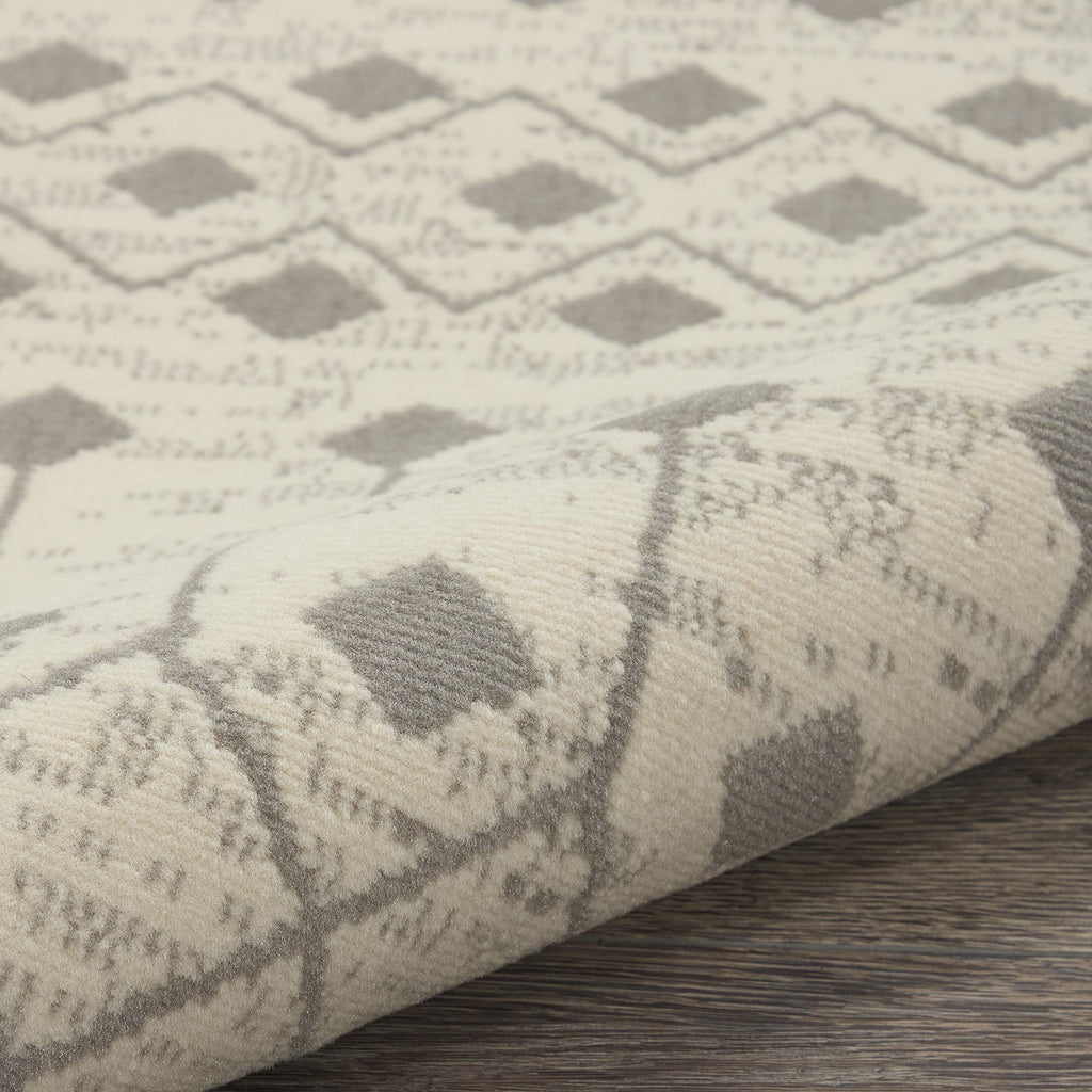 Details: Beautifully bold and gorgeously graphic, the Grafix collection of area rugs from Nourison is destined to deliver a transfixing touch of dramatic appeal to any room. These contemporary rugs are available in an enthralling array of color palettes and power-loomed from long-lasting and fabulously-textured polypropylene for outstanding ease and sensational style. The Moroccan diamond bead pattern of this Grafix area rug creates a dimensional op-art look that draws the eye and pulls a room together. The soft combination of ivory and grey creates a subtle yet stunning focal point for the contemporary home.