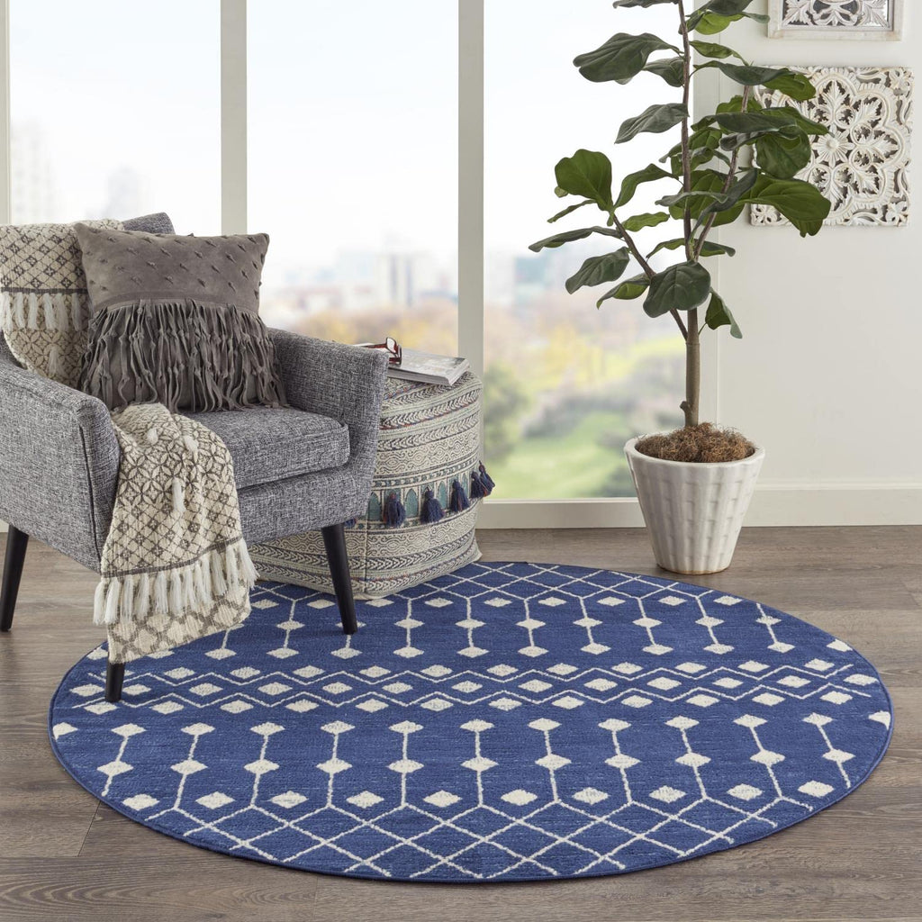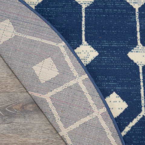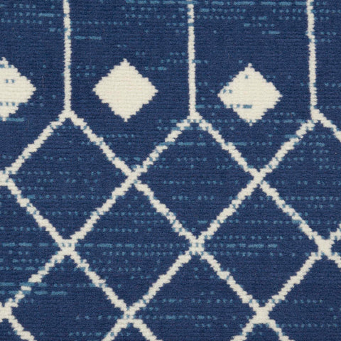 Details: Beautifully bold and gorgeously graphic, the Grafix collection of area rugs from Nourison is destined to deliver a transfixing touch of dramatic appeal to any room. These contemporary rugs are available in an enthralling array of color palettes and power-loomed from long-lasting and fabulously-textured polypropylene for outstanding ease and sensational style. The Moroccan diamond bead pattern of this Grafix area rug creates a dimensional op-art look that draws the eye and pulls a room together. The contrast of blue and ivory creates a stunning focal point for the contemporary home.
