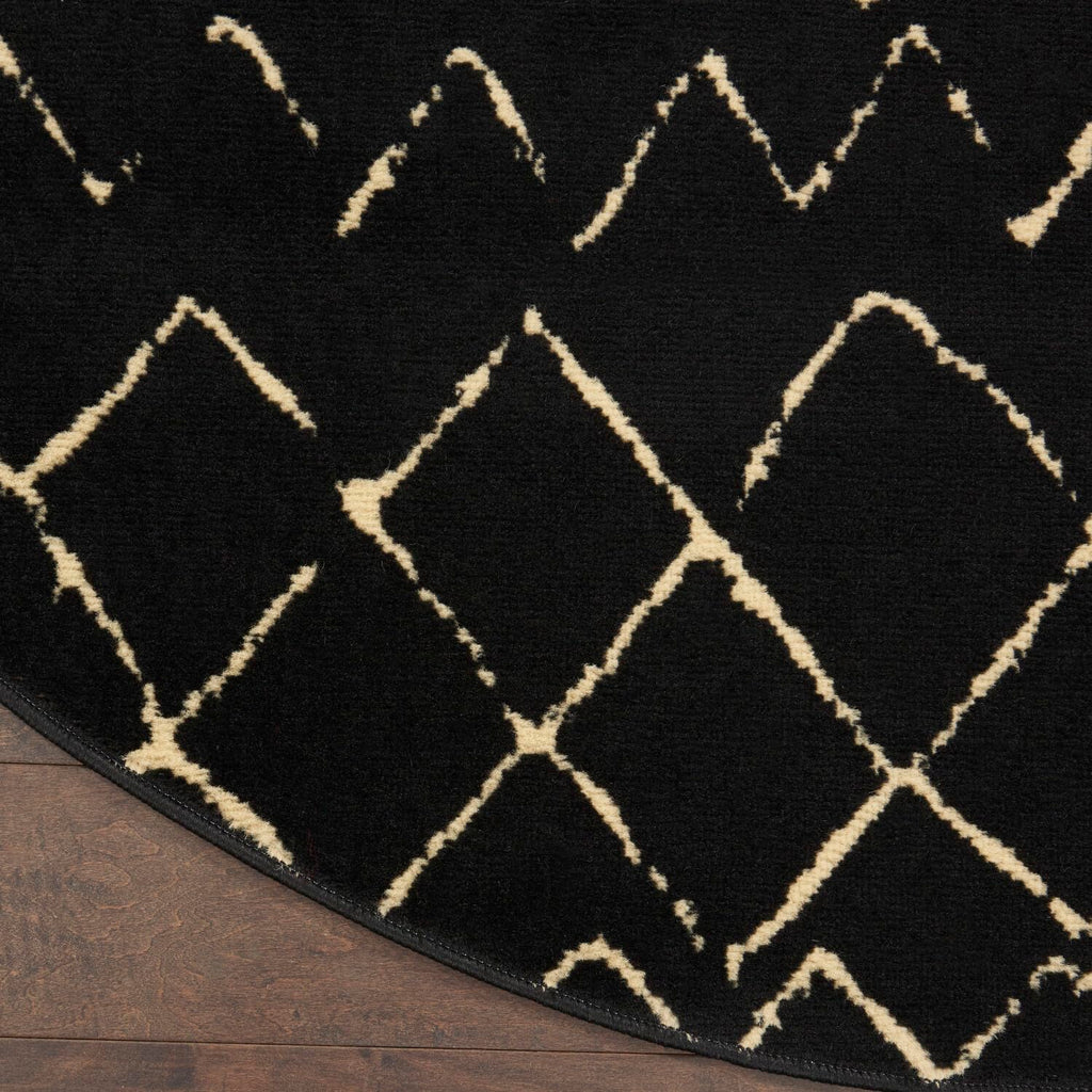 Details: Beautifully bold and gorgeously graphic, the Grafix Collection of area rugs from Nourison is destined to deliver a transfixing touch of dramatic appeal to any room. Available in an enthralling array of contemporary color palettes and power-loomed from long-lasting, easy-care polypropylene, each exciting rug is all about outstanding ease and sensational style. Playful and primitive, this Grafix area rug from Nourison features distressed cream-colored tribal rug patterns on a sumptuous black field. Each rug is power-loomed for simple care, superior wear and a splendid look and feel, and will transform even the most ordinary room into something extraordinary.