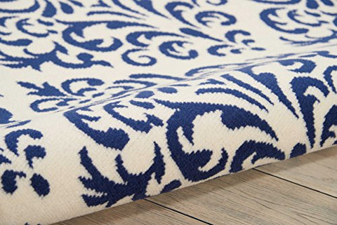 Details: Damask design takes elegance to another level with glamorous, geometric precision of ornate navy patterns on a white field. Power loomed for long wear and low maintenance, this Graphix area rug from Nourison will lend a dash of drama to any room.
